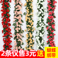 仿真樱花花藤空调管道房顶长条吊顶室内装饰塑料花条藤条缠绕垂吊