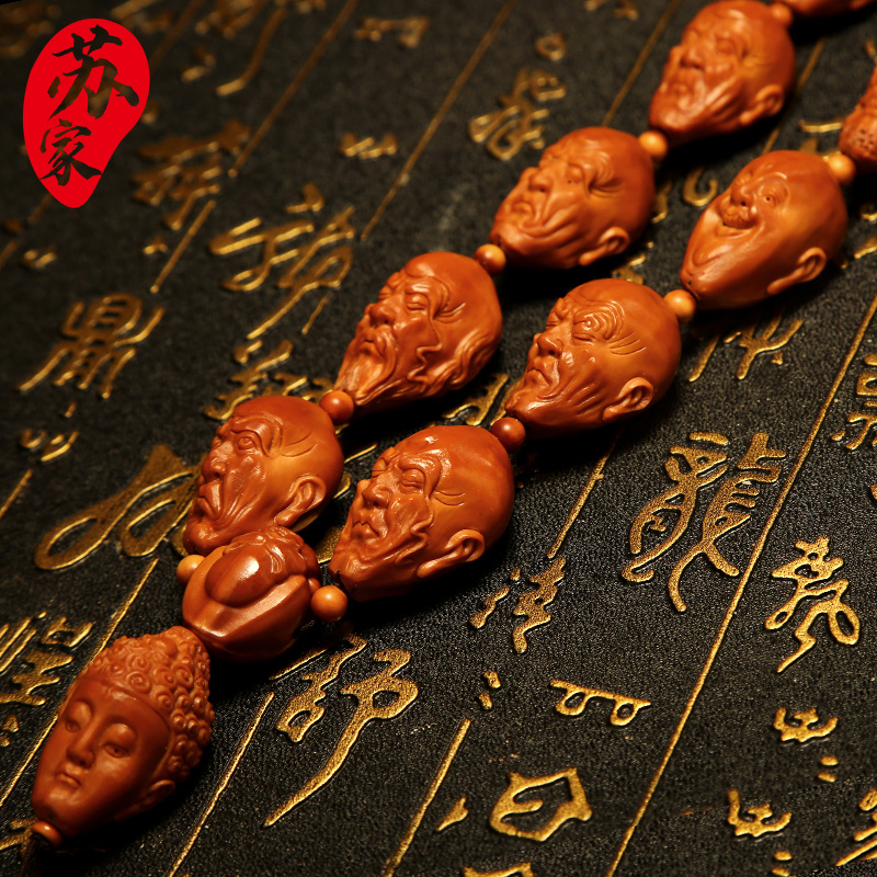 橄榄核手串 十八罗汉文玩把件手工橄榄核雕长串 18罗汉脖挂项链男