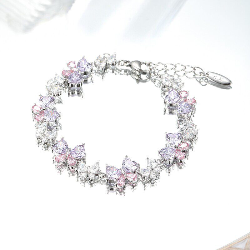 合金琉璃手链 早春粉彩风轻奢高级感蝴蝶 紫色蝴蝶吊坠女士精致