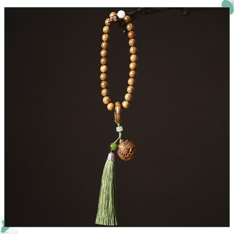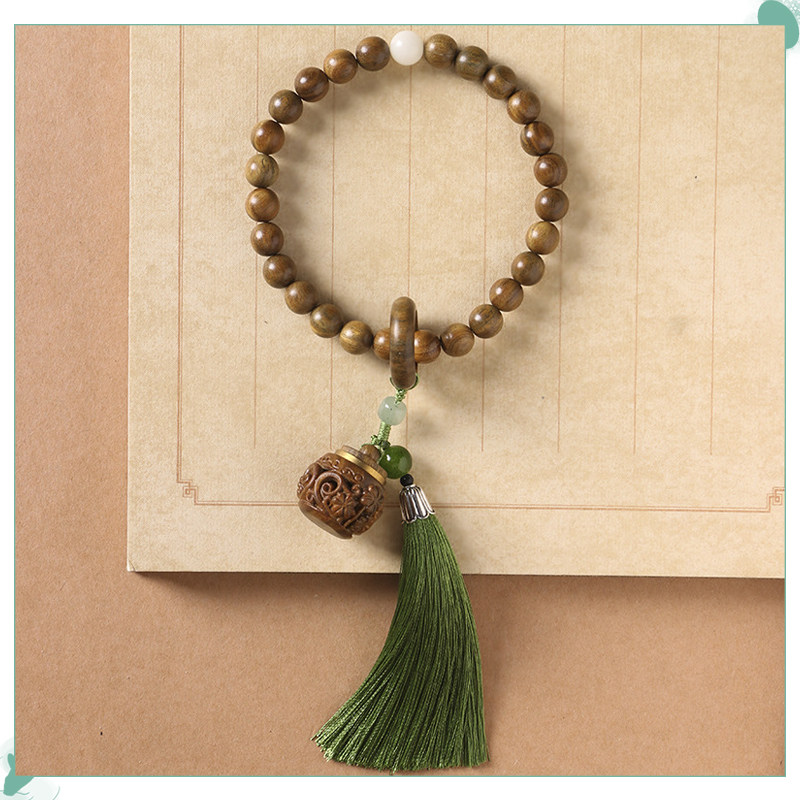 国风小清新绿檀木珠编织手串古风可打开扩香香囊流苏吊坠手环新款