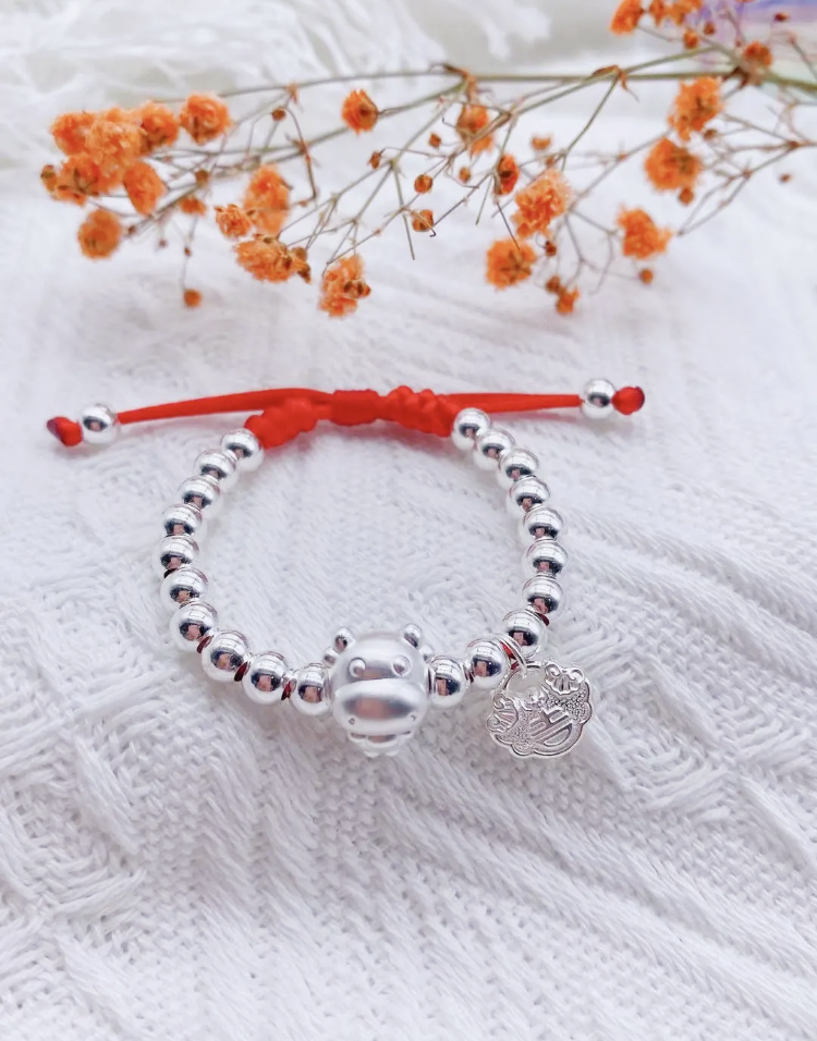 足银999红绳手链生肖手工儿童本明命年龙蛇礼物银饰情侣手绳纯银