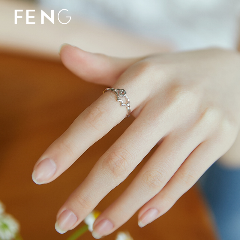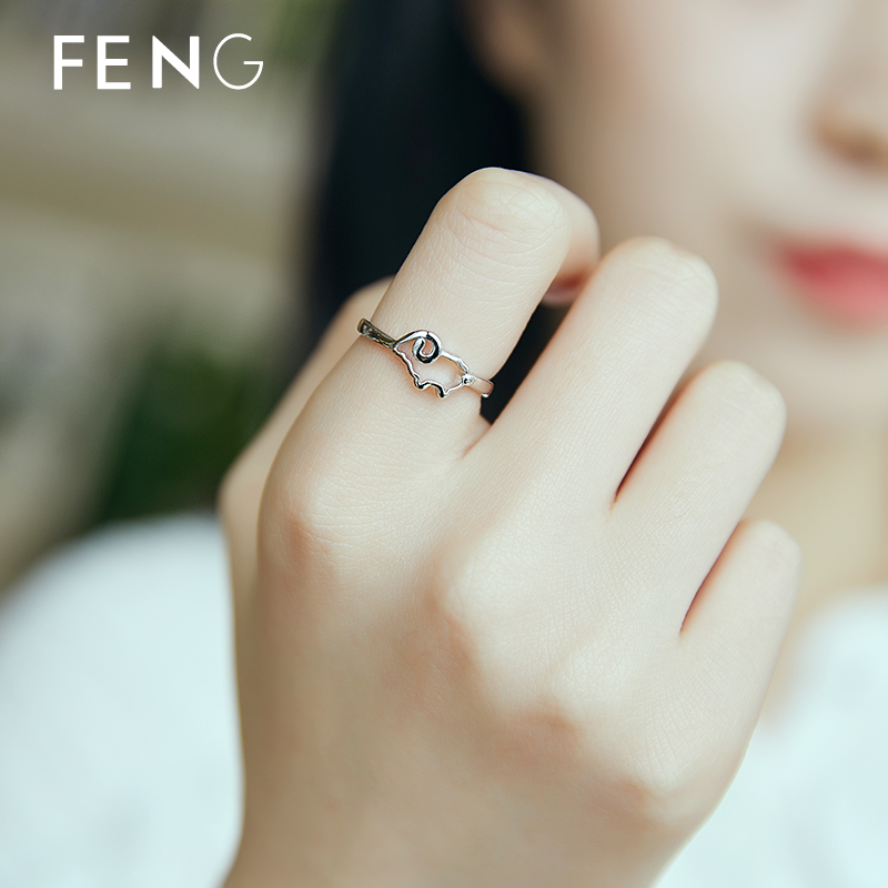 十二生肖羊戒指女s925纯银小羊镂空开口戒属羊鼠牛虎兔龙刻字