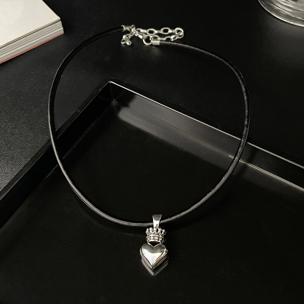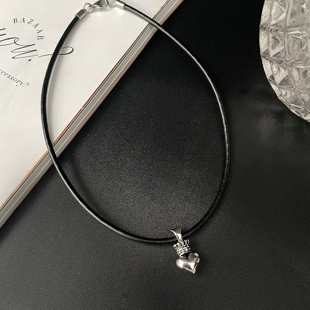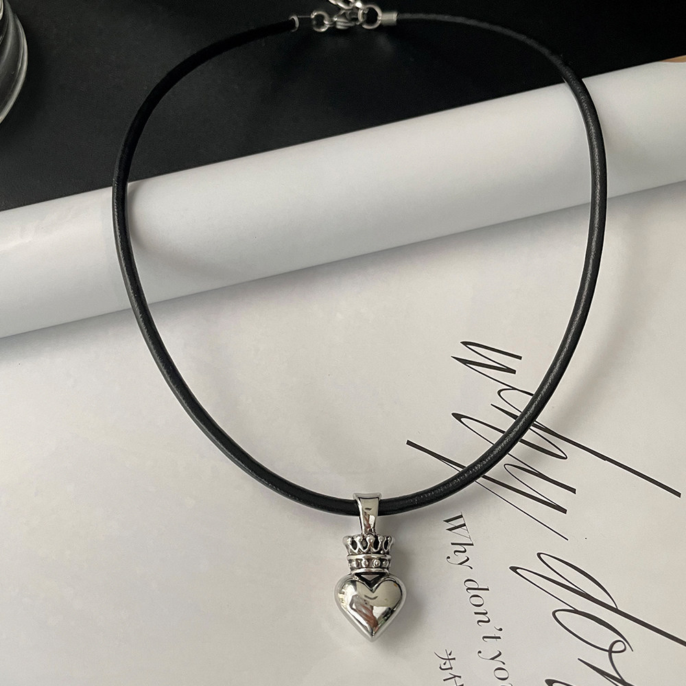 黑色皮绳爱心吊坠颈链女choker小众设计高级感项链轻奢锁骨链配饰