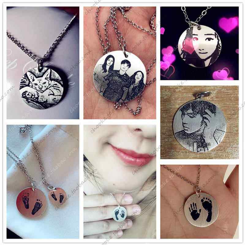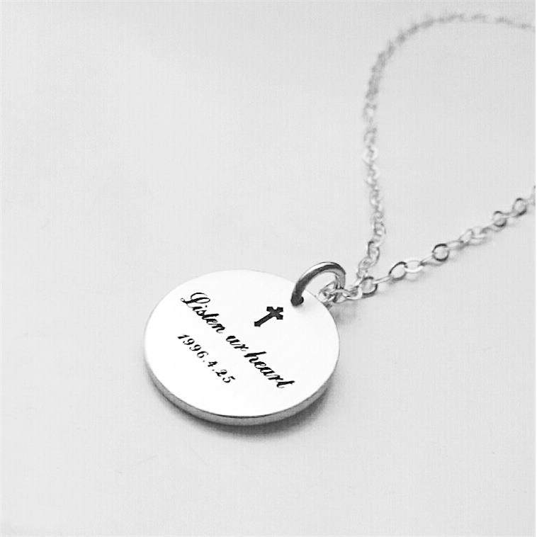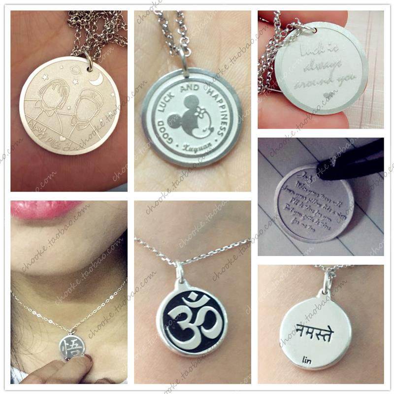 高档圆牌项链 定制礼刻字刻照片DIY图案纯银链形男女情圆侣锁骨七
