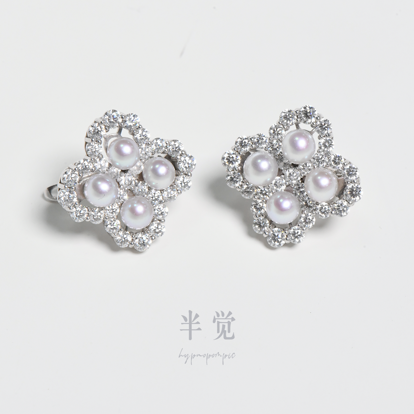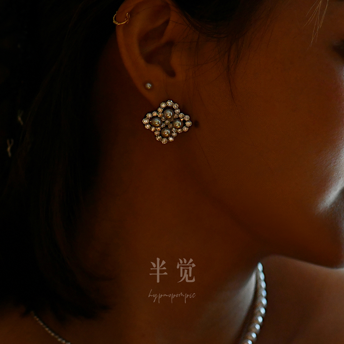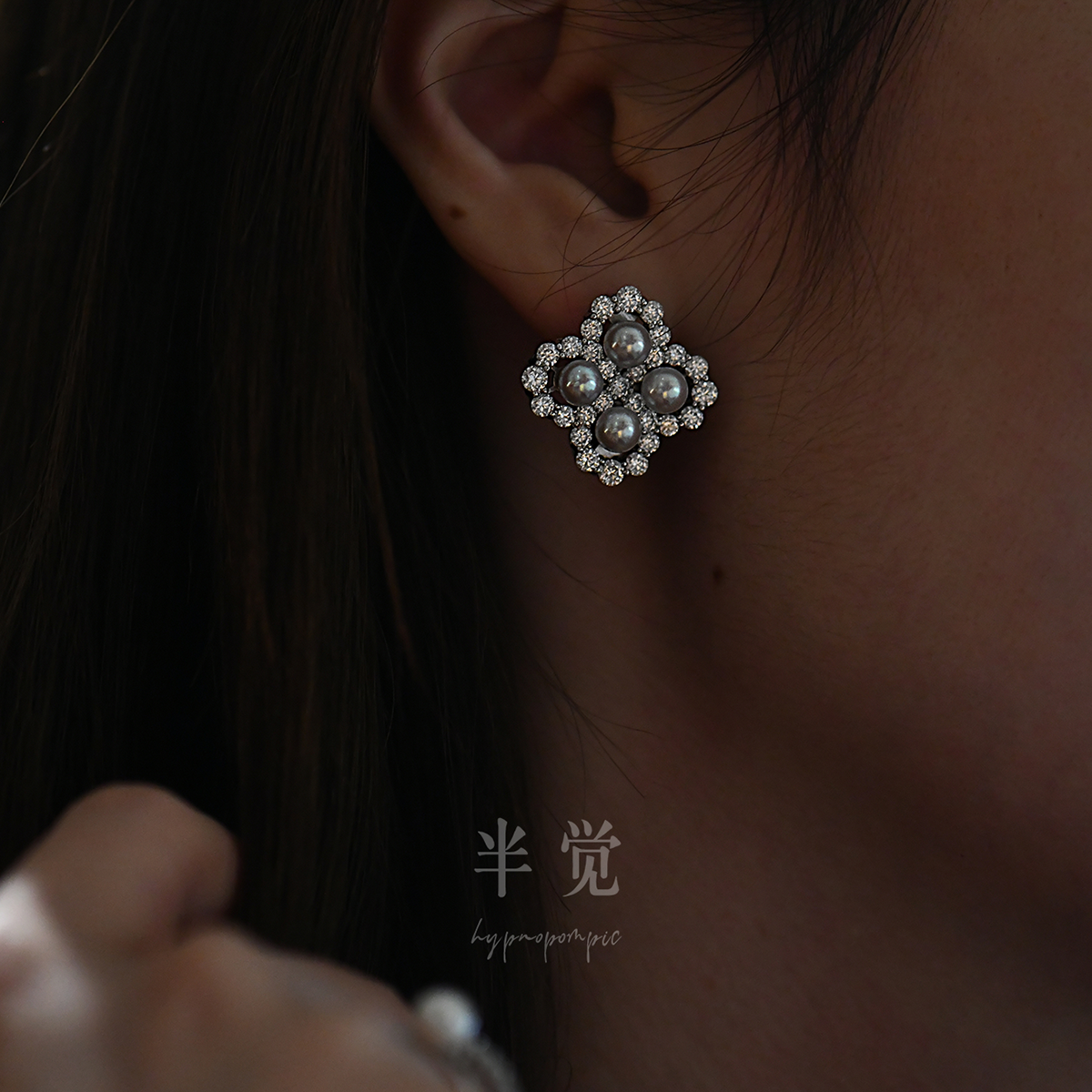 半觉【一心一意】冰莹灰重工高定莫桑钻纯银设计款小香风气质耳钉
