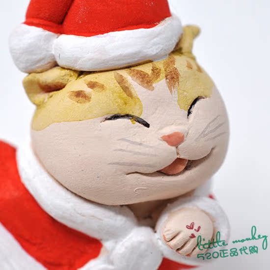 日本代购 猫咪 圣诞老人 匠人手工 治愈可爱 公仔 手工艺摆件装饰