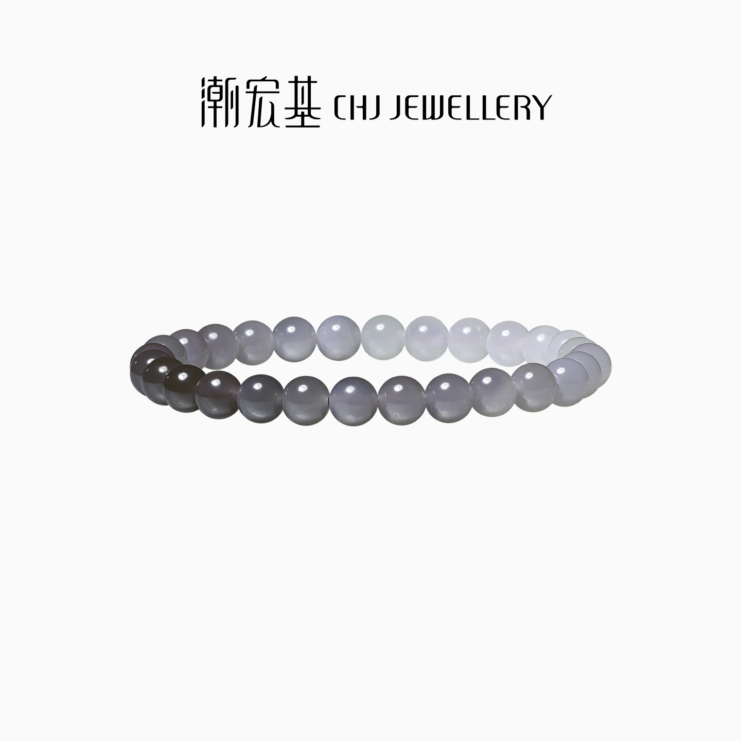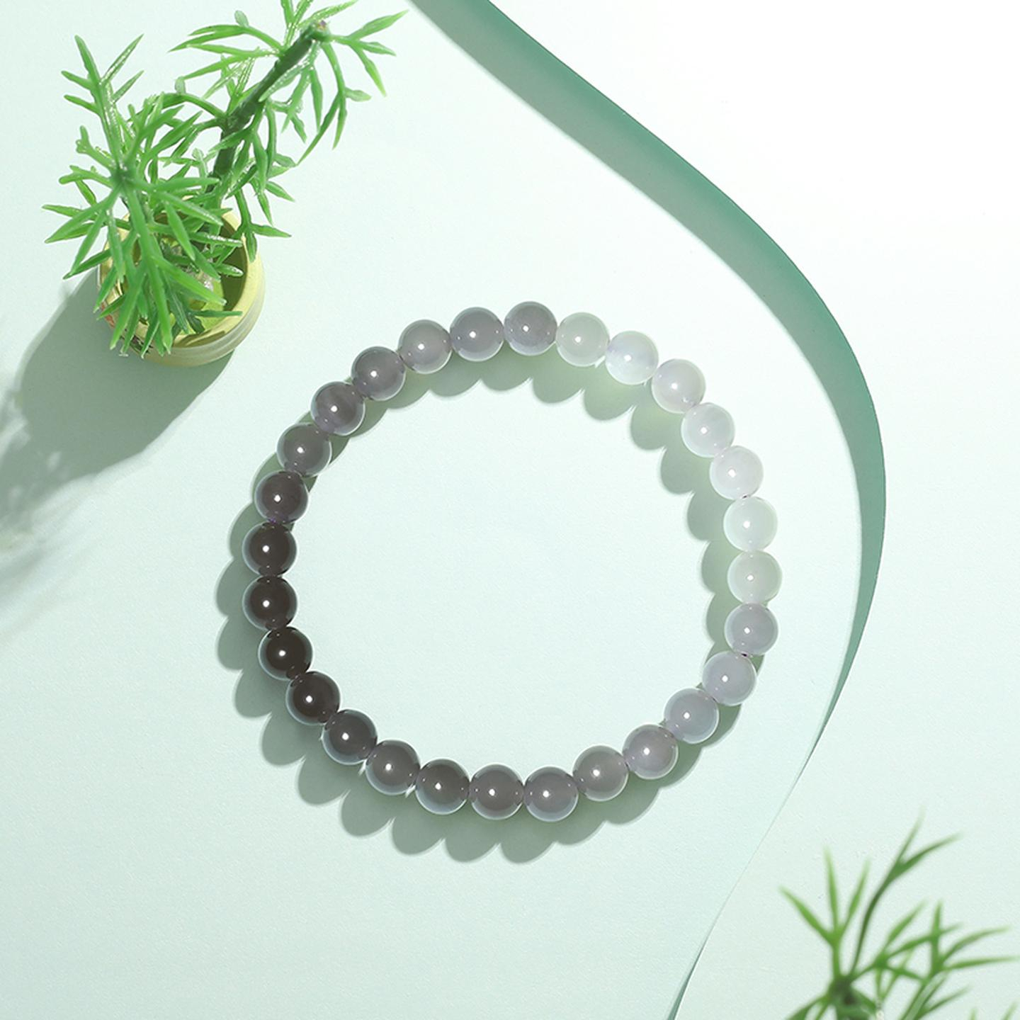 潮宏基倾玉烟紫渐变和田玉手链手串玉珠圆珠国潮生日礼物