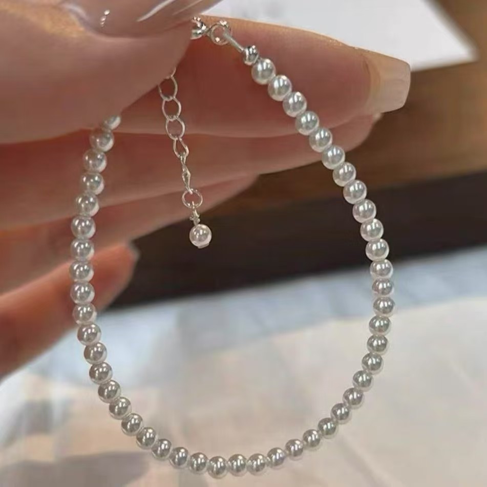 极细正圆小米粒施家仿珍珠手链女2025年新款轻奢小众法式精致手串