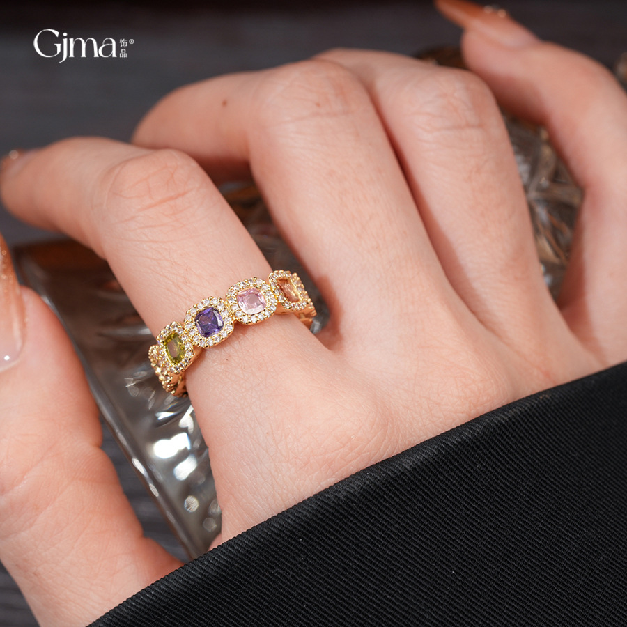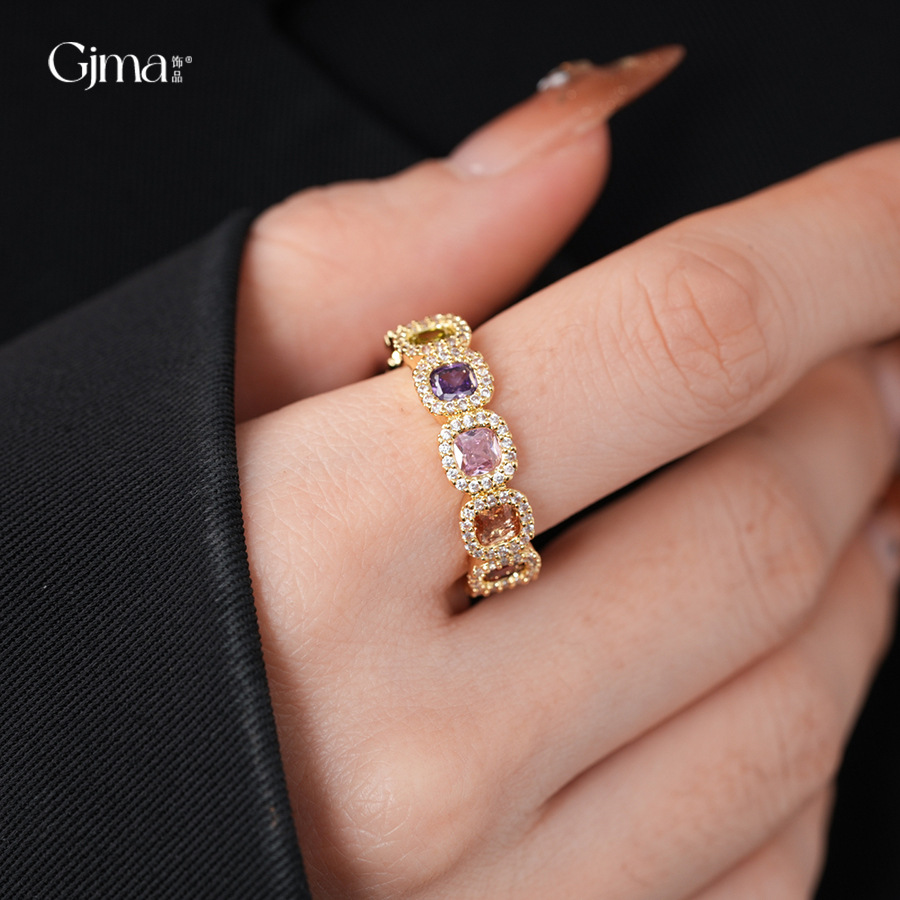 French Square Zircon Ring, Geometric Elegant Adjustable Band