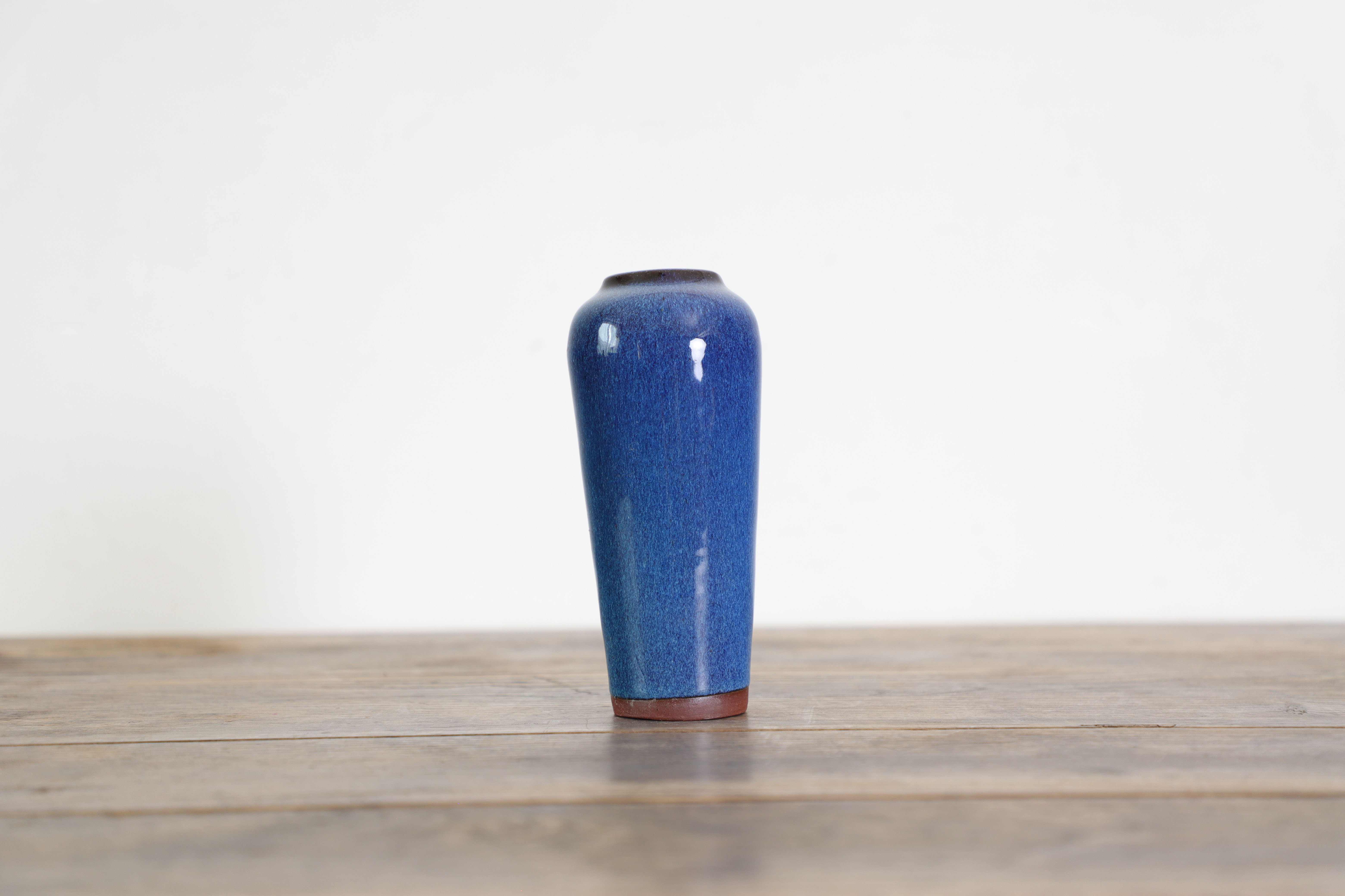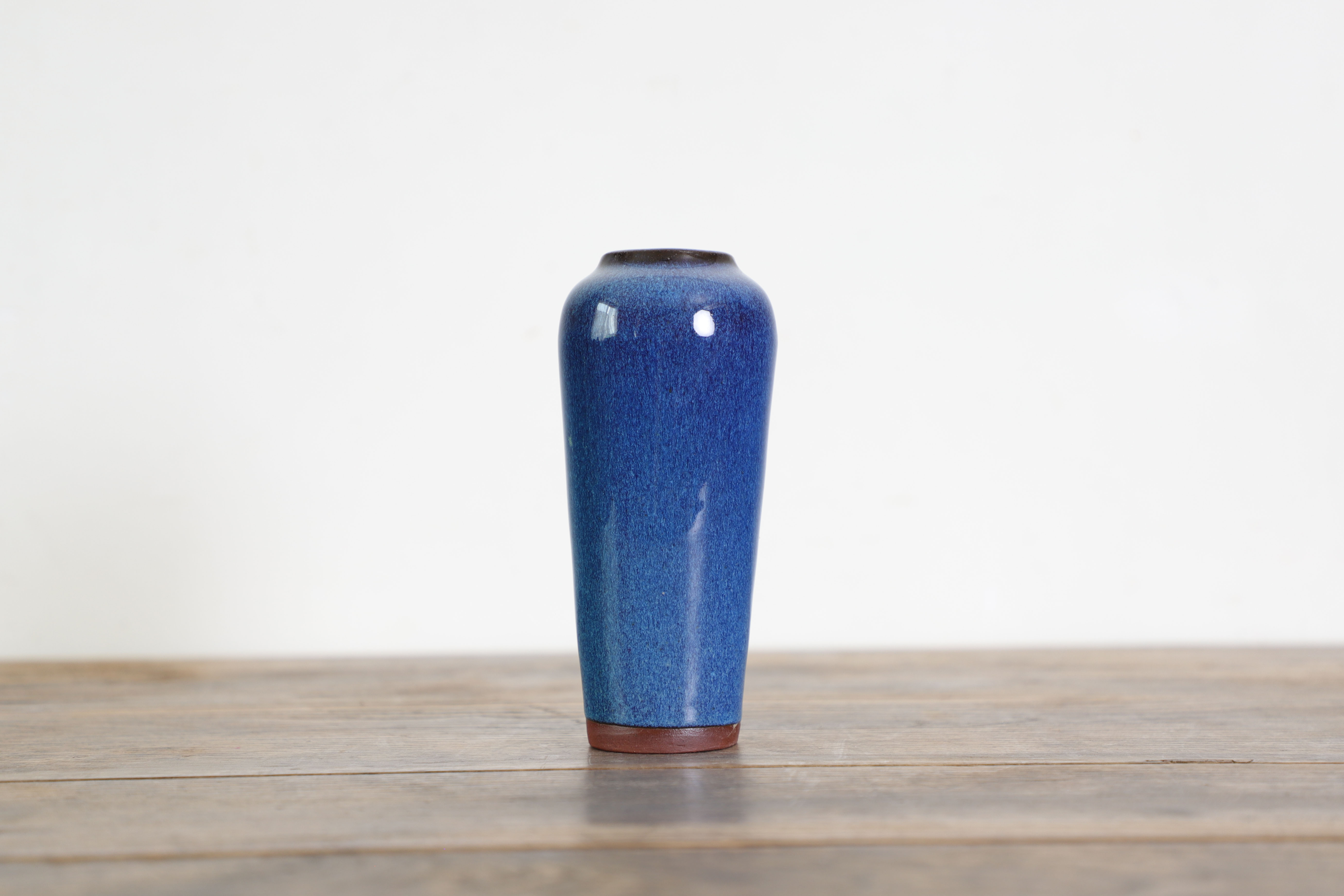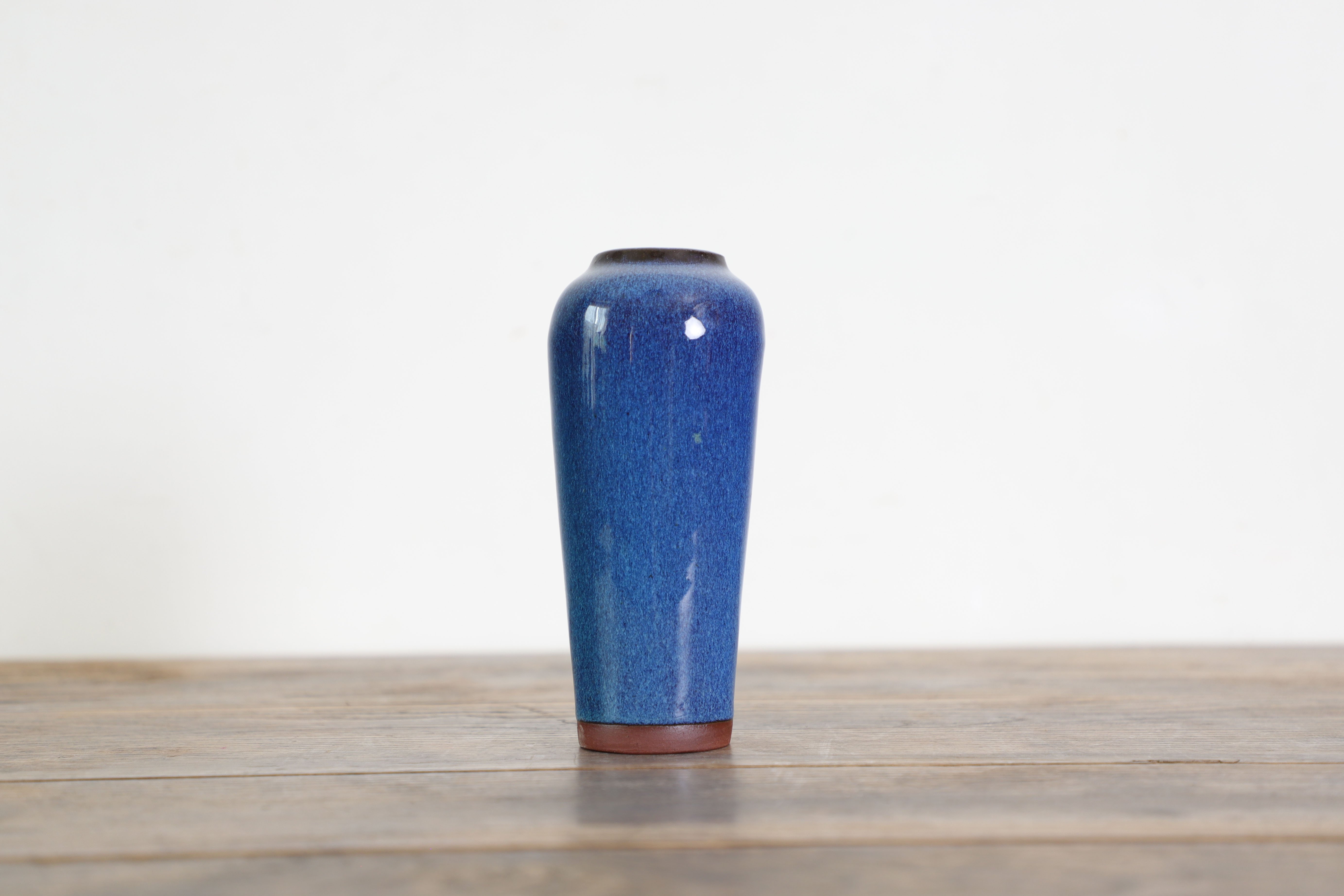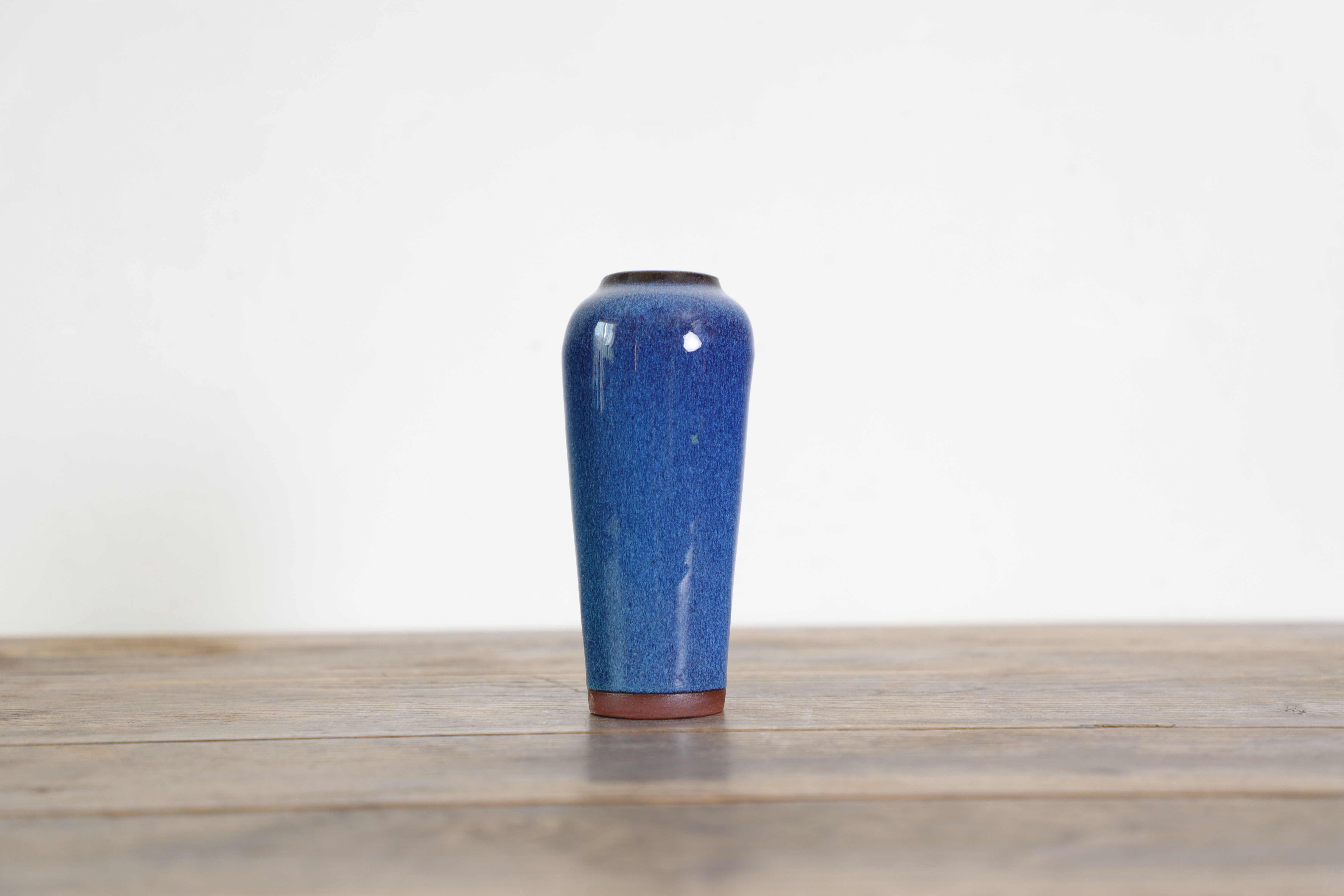 日月堂 近代小钧釉花插 花瓶带款紫砂胎蓝色宜均釉古董老物件摆件