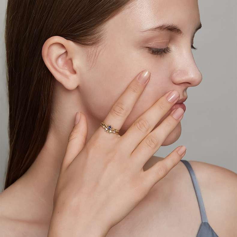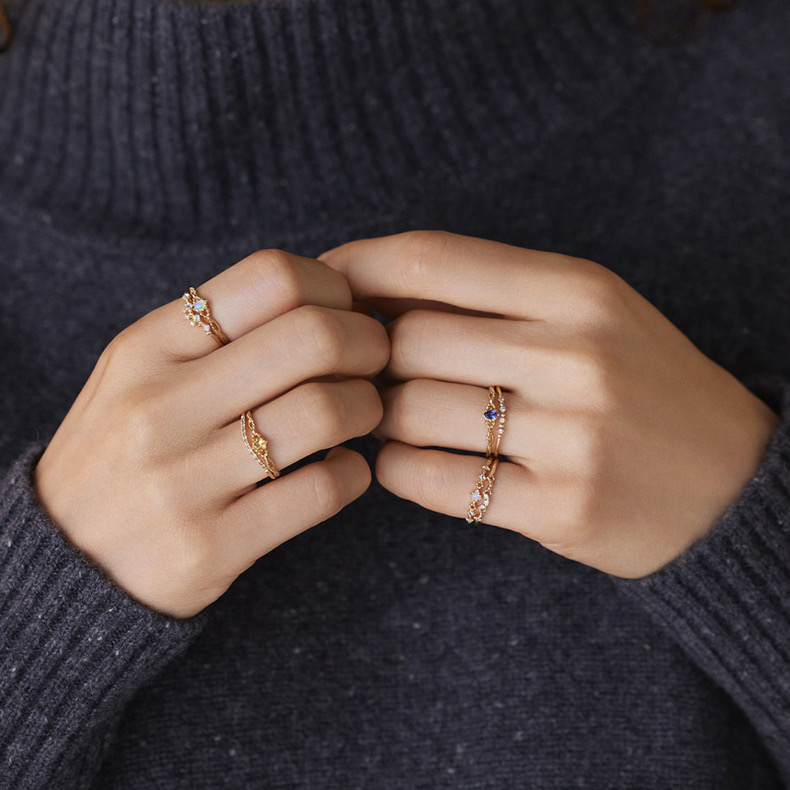 日系轻奢nojess同款 蝴蝶形 彩宝小钻 托帕 堇青石 欧泊 V型戒指
