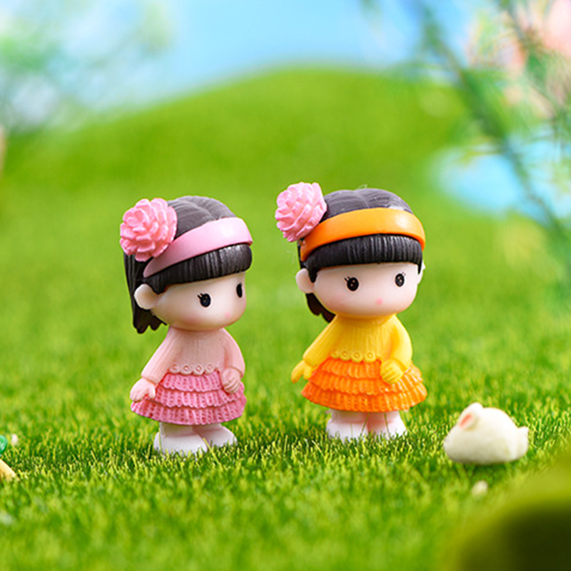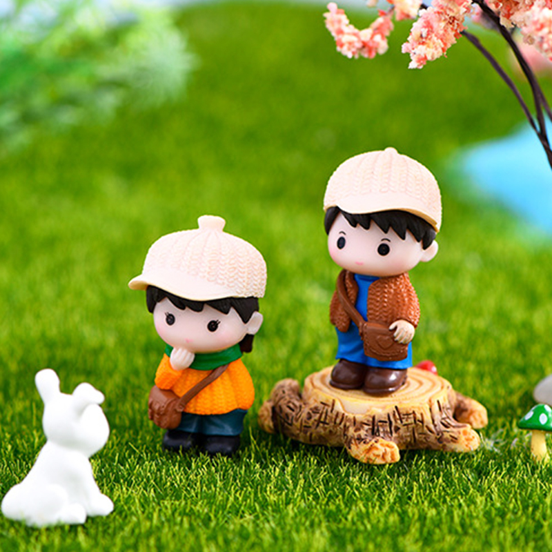 挎包戴花男女孩情侣邻家公仔家居玄关客厅装饰柜办公室书桌面摆件