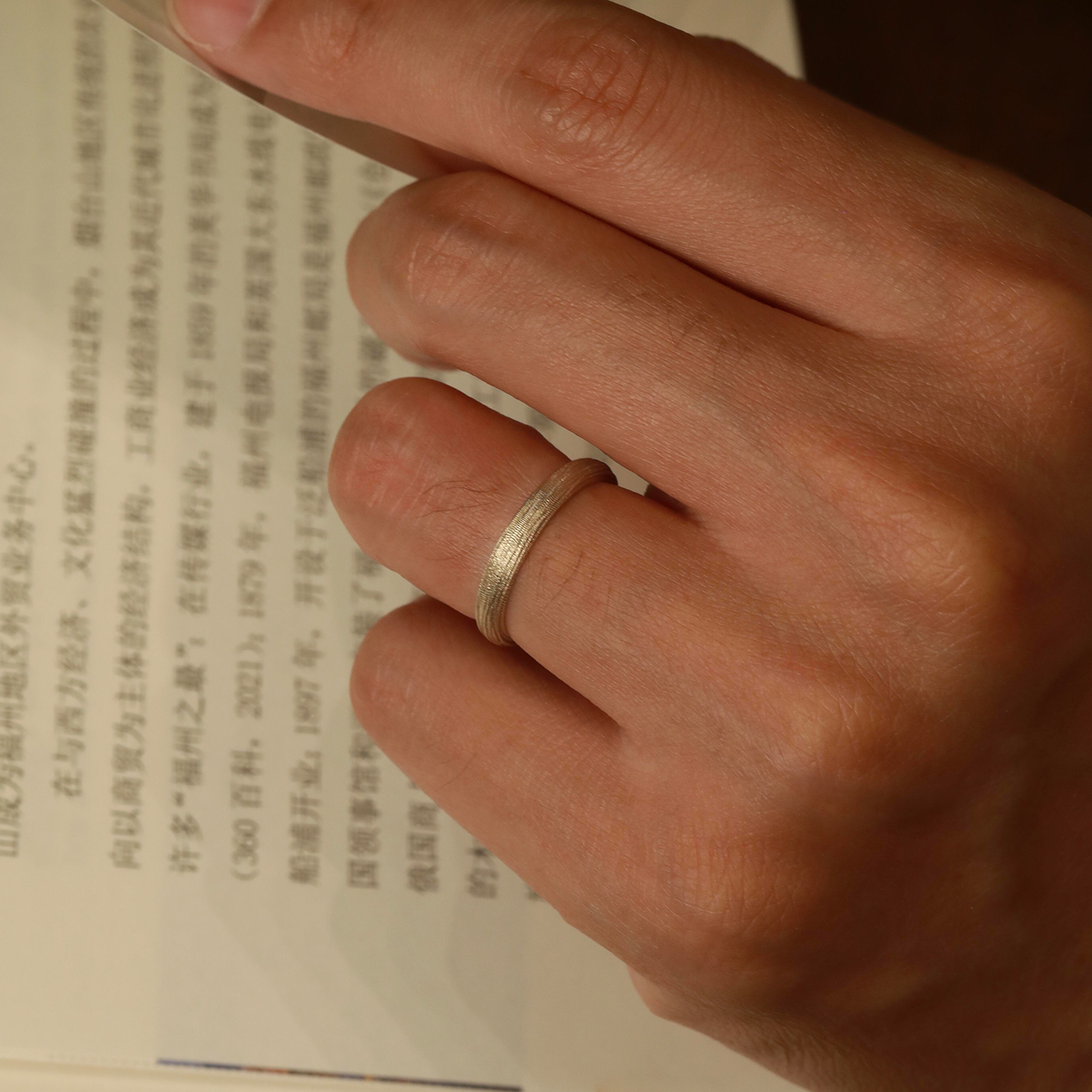 中古做旧银色拉丝素圈戒指女小众设计复古轻奢高级感百搭细圈指环