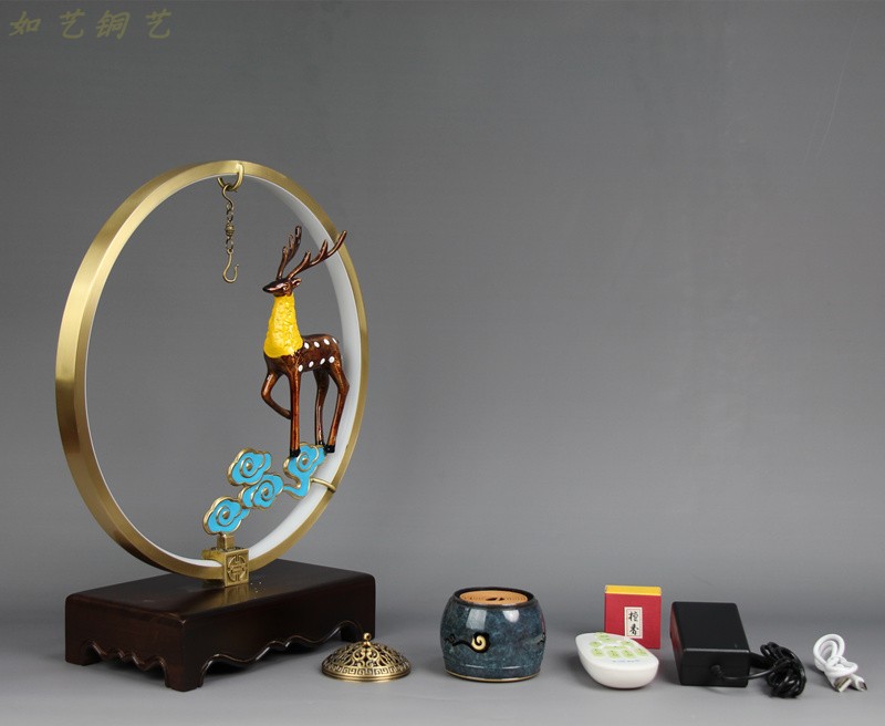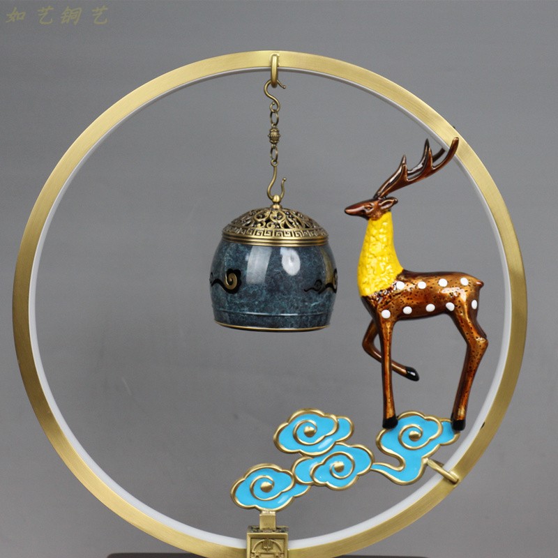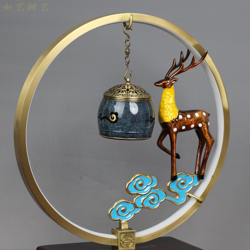 音乐铜香炉禅意摆件室内客厅创意灯光吊炉家居办公室桌面装饰品