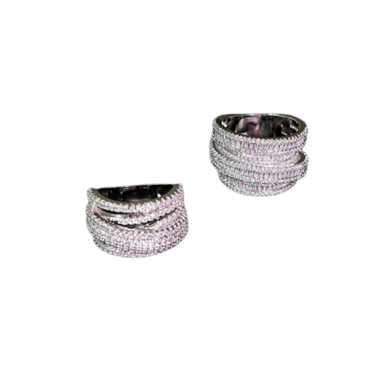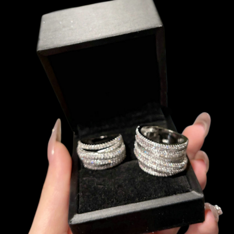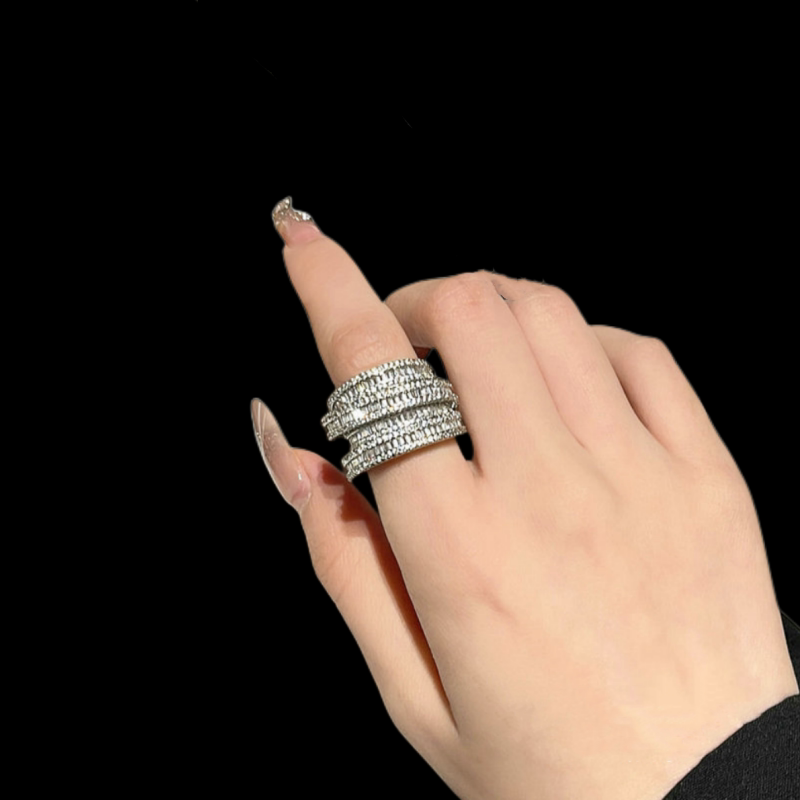 古巴比伦冰糖缠绕宝石戒指 星河璀璨镀18K金多层线条锆石戒指组合