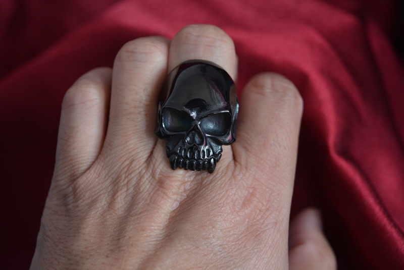 大脑门暴牙电镀黑色骷髅头指环恶整好友道具恐怖礼物钛钢戒指