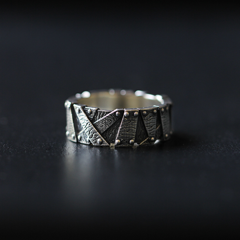 新款复古篱笆戒指高级感潮流拉丝男女通用嘻哈指环时尚装饰可调节
