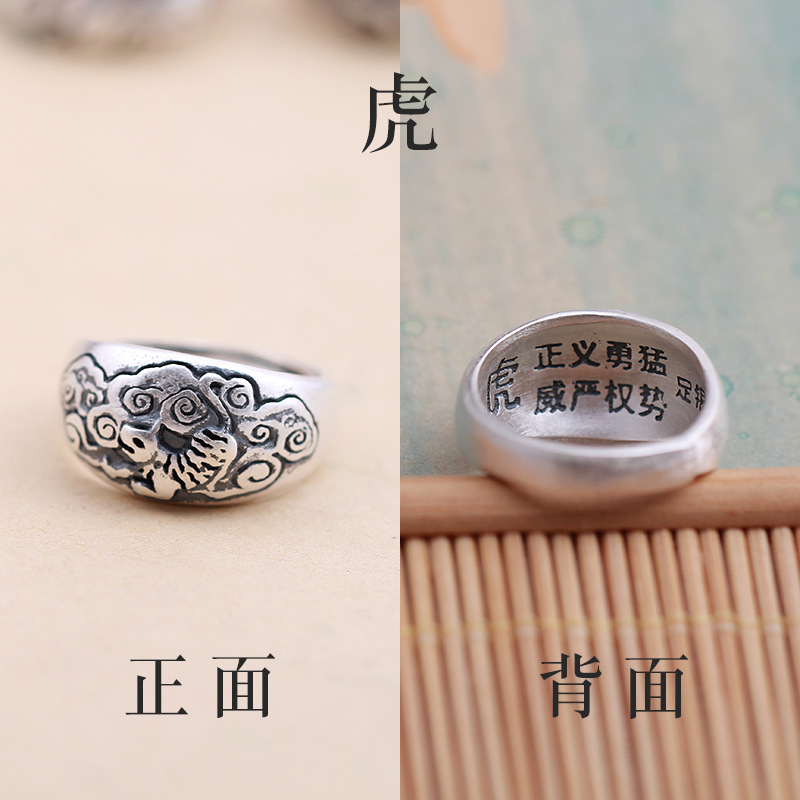 新中式复古十二生肖戒指国潮生肖图腾本命年寓意文字指环男女开口