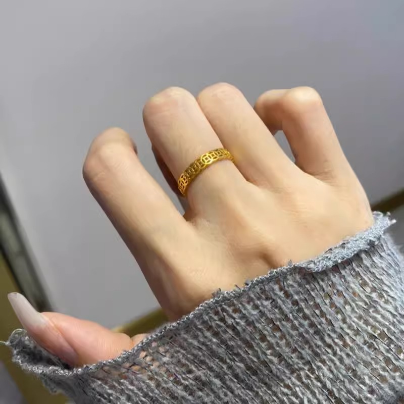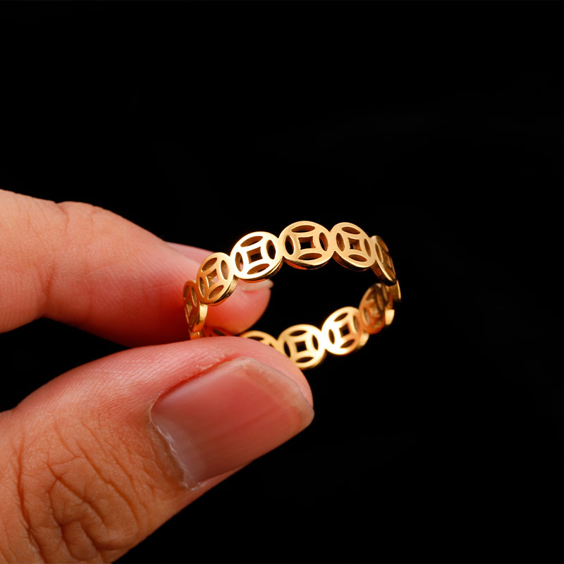 铜钱戒指钛钢不掉色钱多多素圈戒指旺财偏财戒指男士女士招财转运