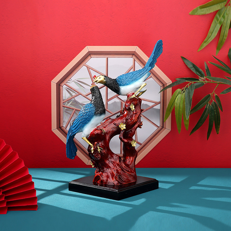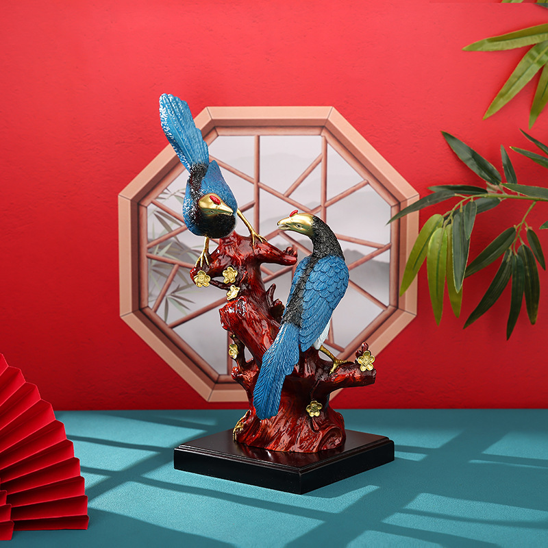 黄铜摆件《喜上梅梢》喜鹊客厅桌面玄关乔迁之喜中式装饰品