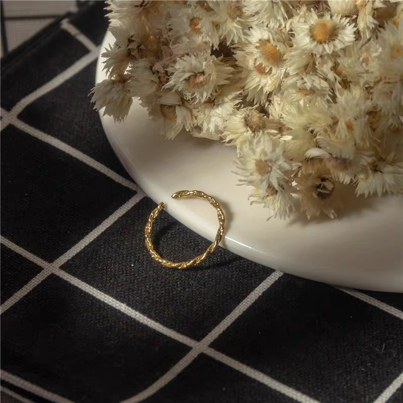 十里间 素戒/简单大方麻花单圈戒指百搭优雅可调节中戒气质指环