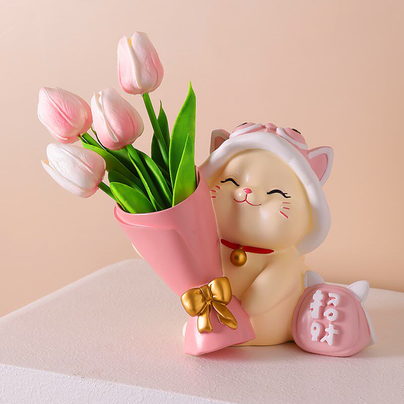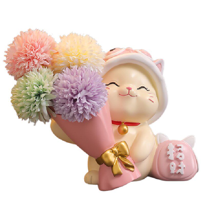 奶油风捧花招财猫摆件家居客厅玄关酒柜电视柜装饰品乔迁新居礼品
