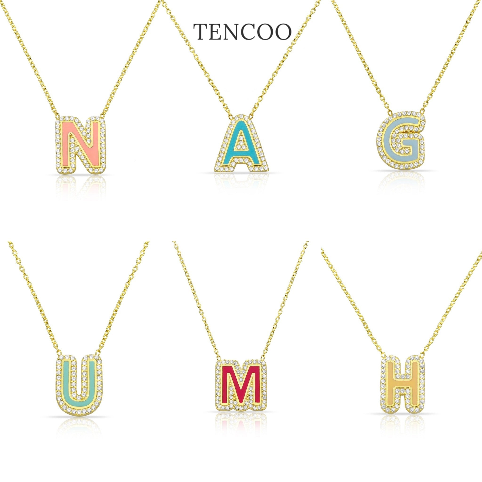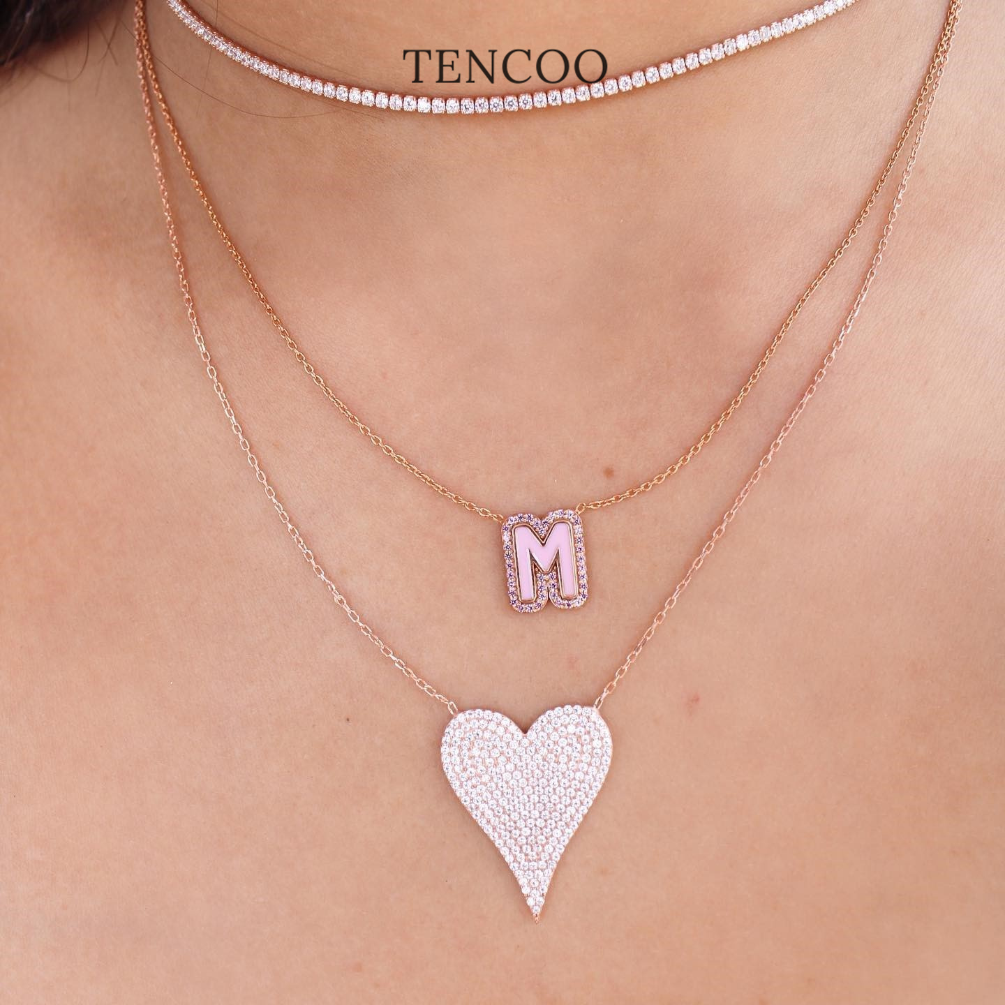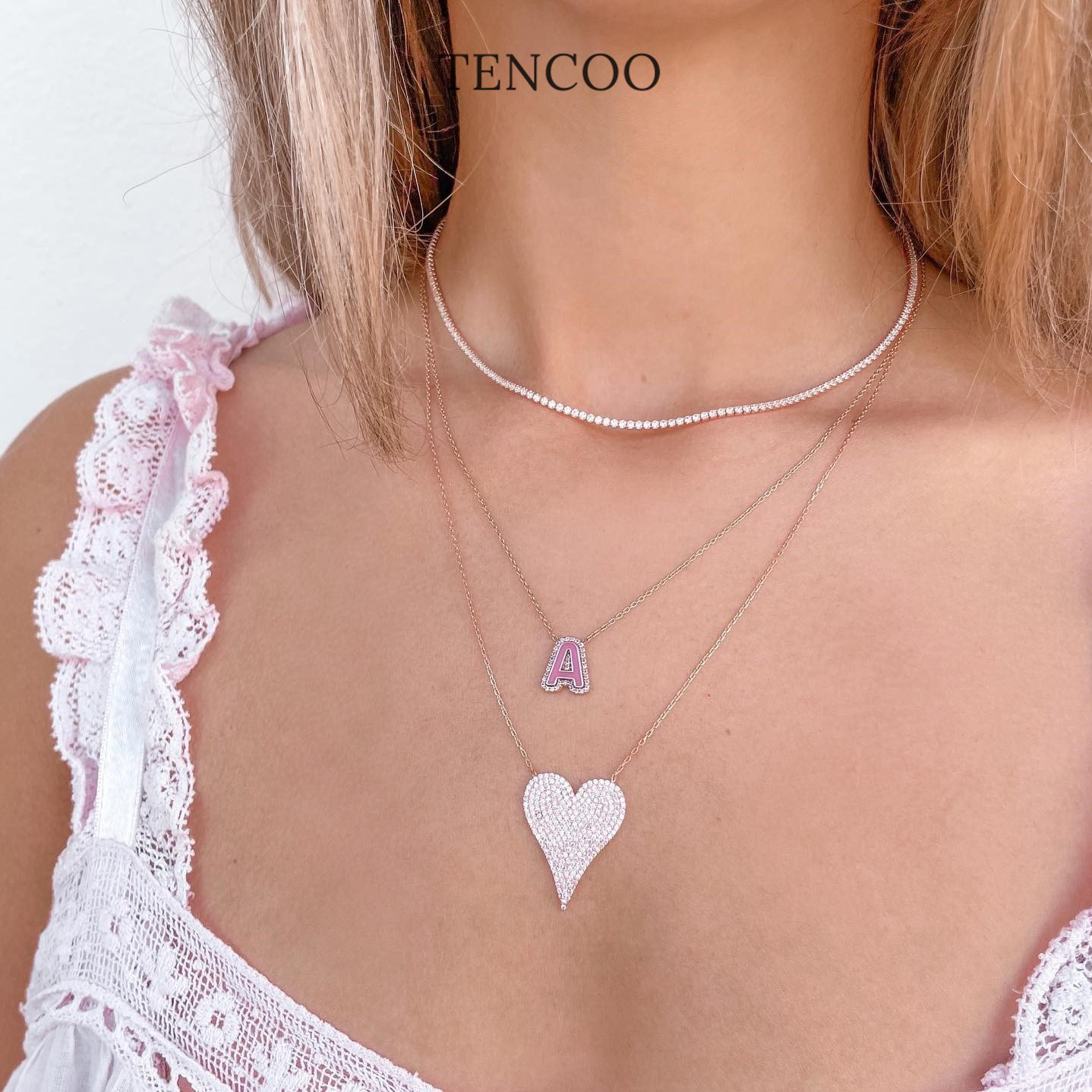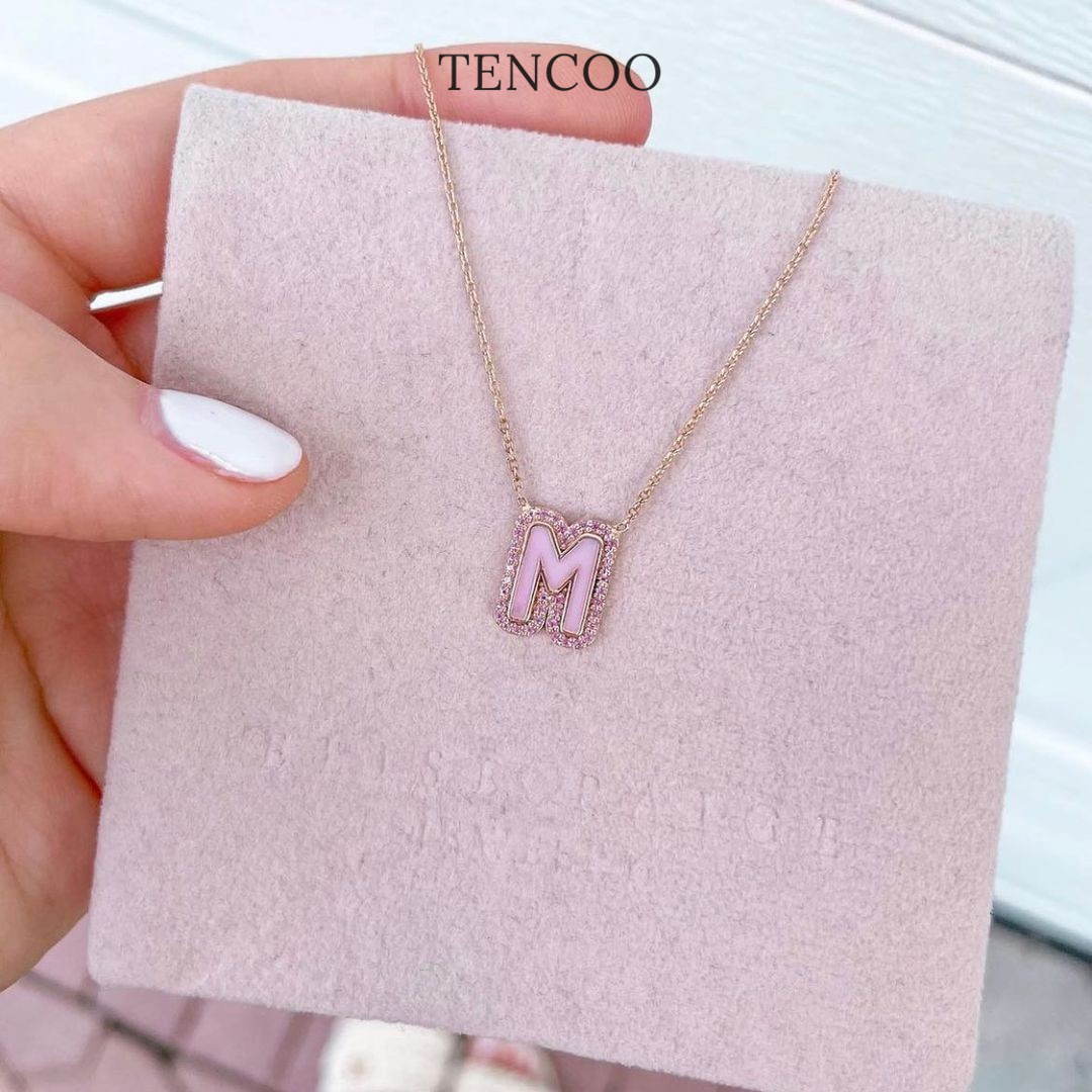 Tencoo单字母项链定制珐琅钻石轮廓密镶宝石锁骨链原创设计
