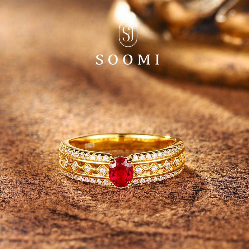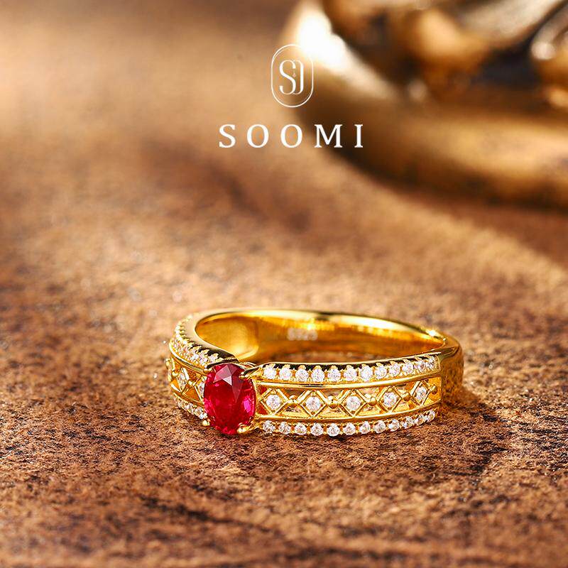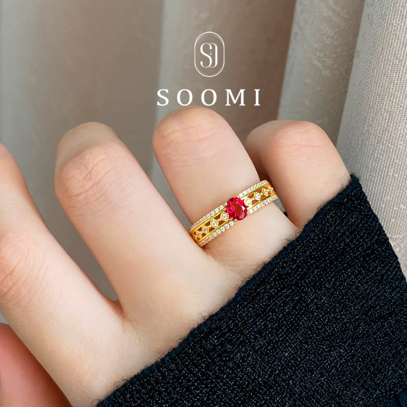 【SOOMI灵犀】925银0.7克拉培育鸽血红宝石戒指经典百搭戒环设计