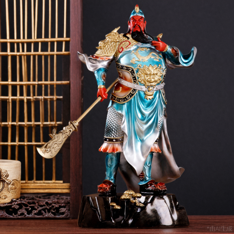纯铜关公摆件 客厅供奉武财神关二爷铜像 办公室商铺招财关公神像