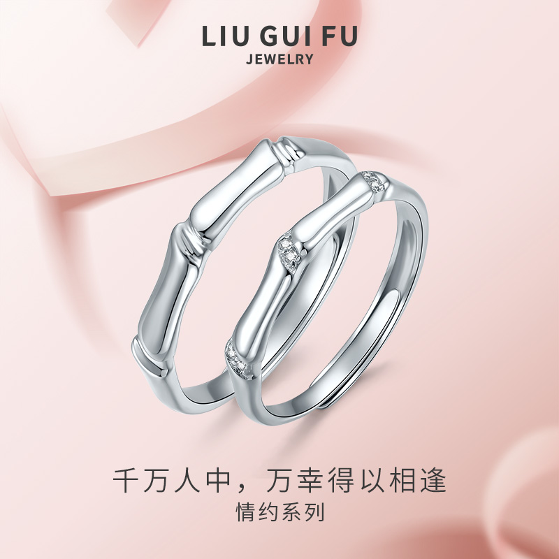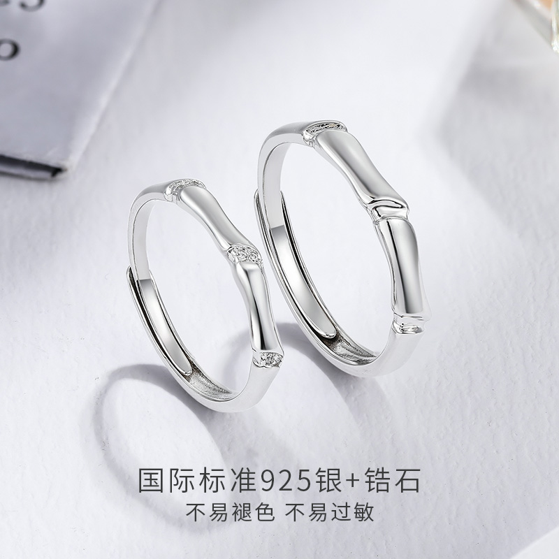 六桂福S925竹节银戒指情侣男女对戒小众素圈指环设计小众送男女友