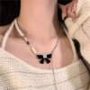 红色丝绒蝴蝶结珍珠项链轻奢小众流苏潮设计甜美精致配饰毛衣链女