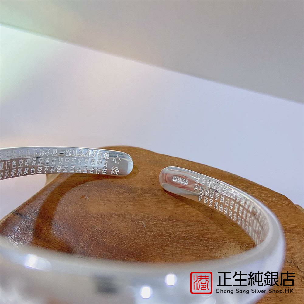 香港正生9999足银心经手镯年轻款纯银镯子气质简约送妈妈时尚新品
