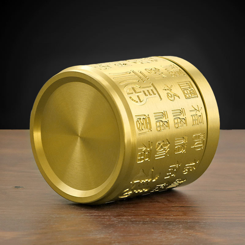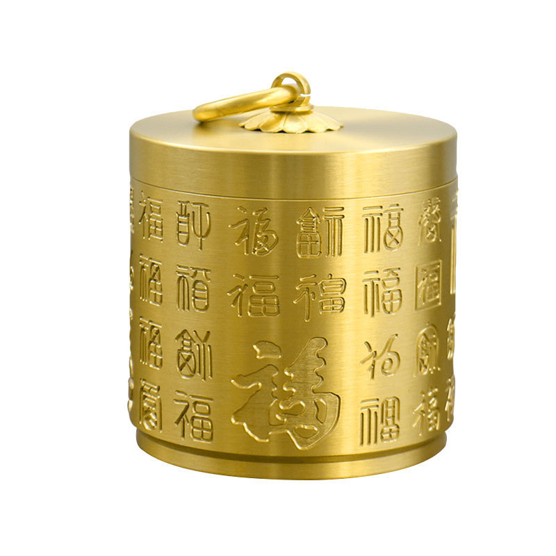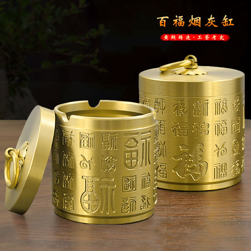烟灰缸黄铜带盖防飞灰全铜百福烟缸车载办公室家用客厅装烟灰铜器