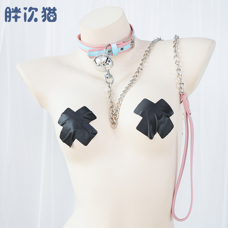 软妹铃铛脖环 性感皮革项圈带链子原宿风