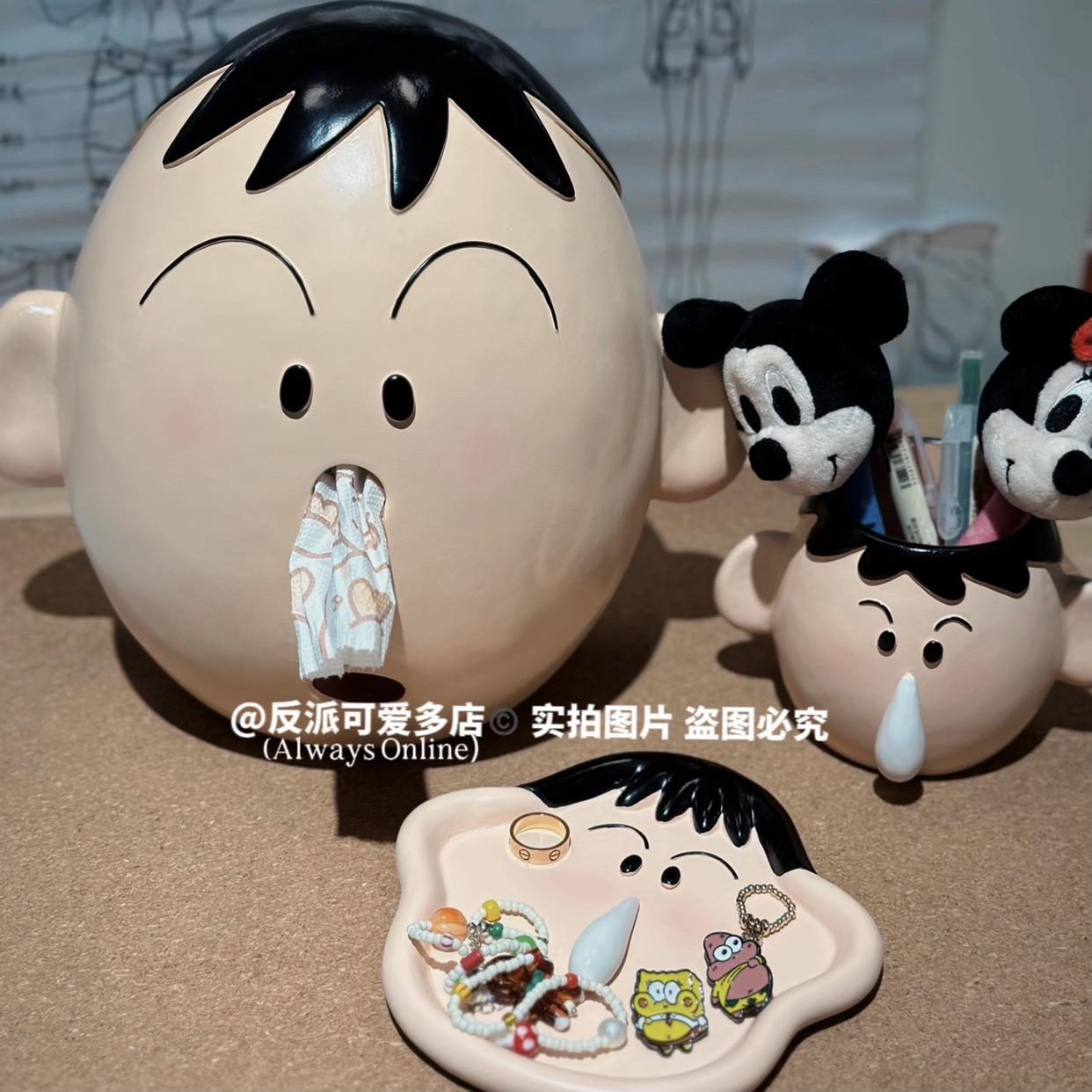 反派可爱多阿呆抽纸盒卷纸小新托盘笔筒呆神卡通家居收纳摆件