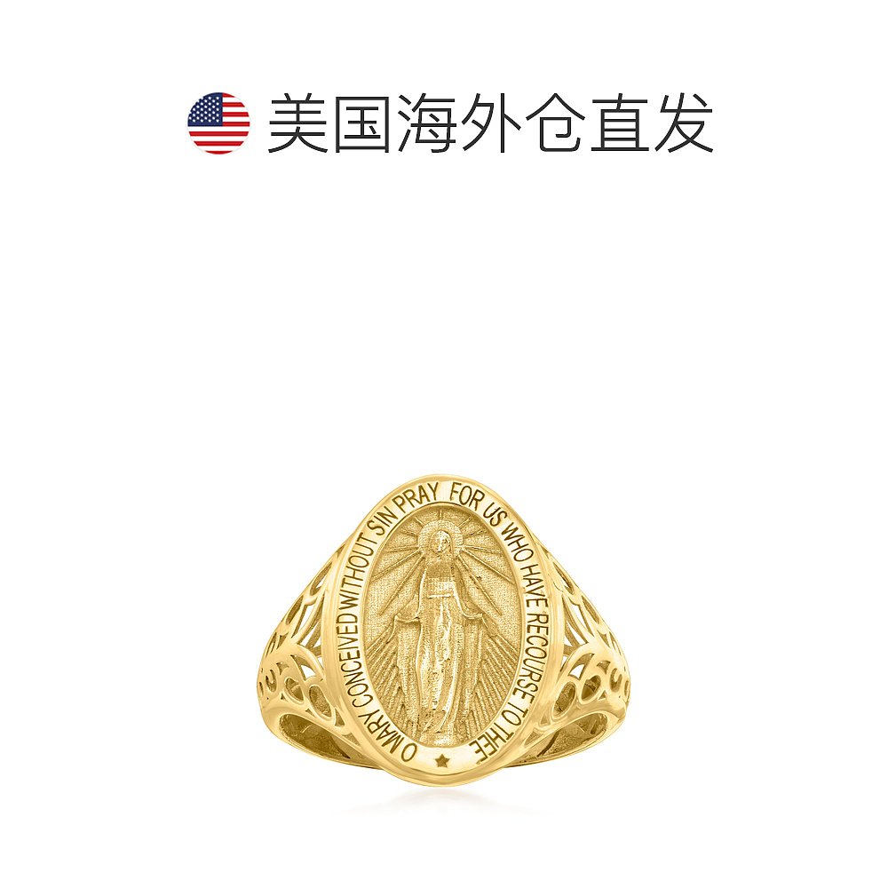 自营 Ross-Simons 意大利 14 克拉黄金奇迹勋章图章戒指 黄色 美