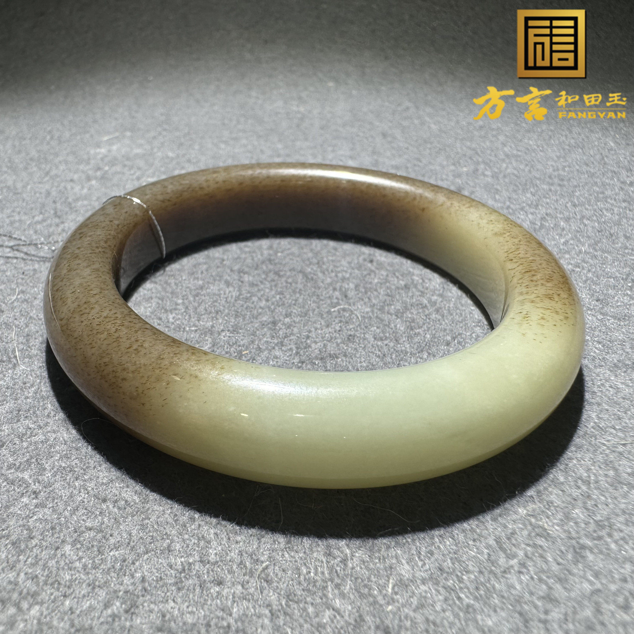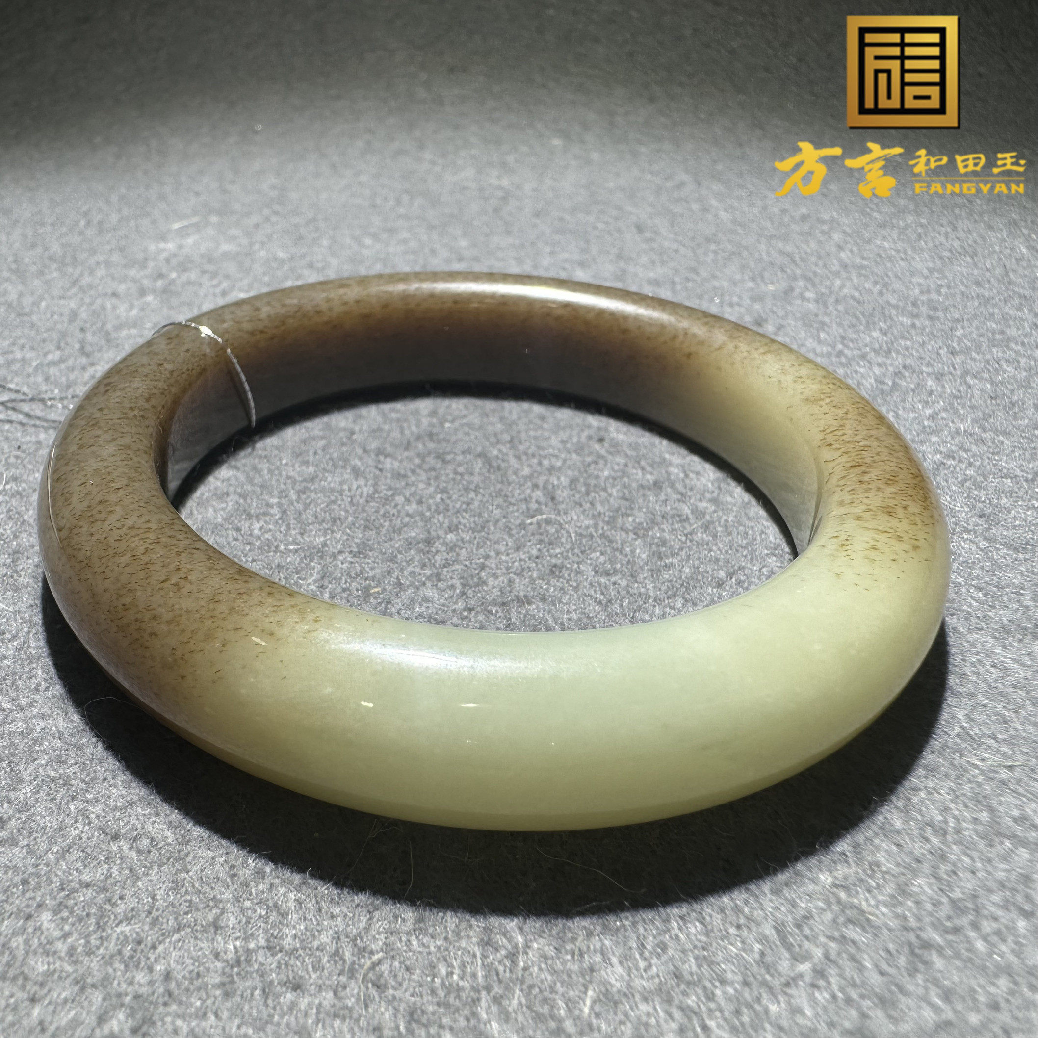 放漏方言新疆和田玉且末料糖白分明半山半水巧色油润57mm手镯S