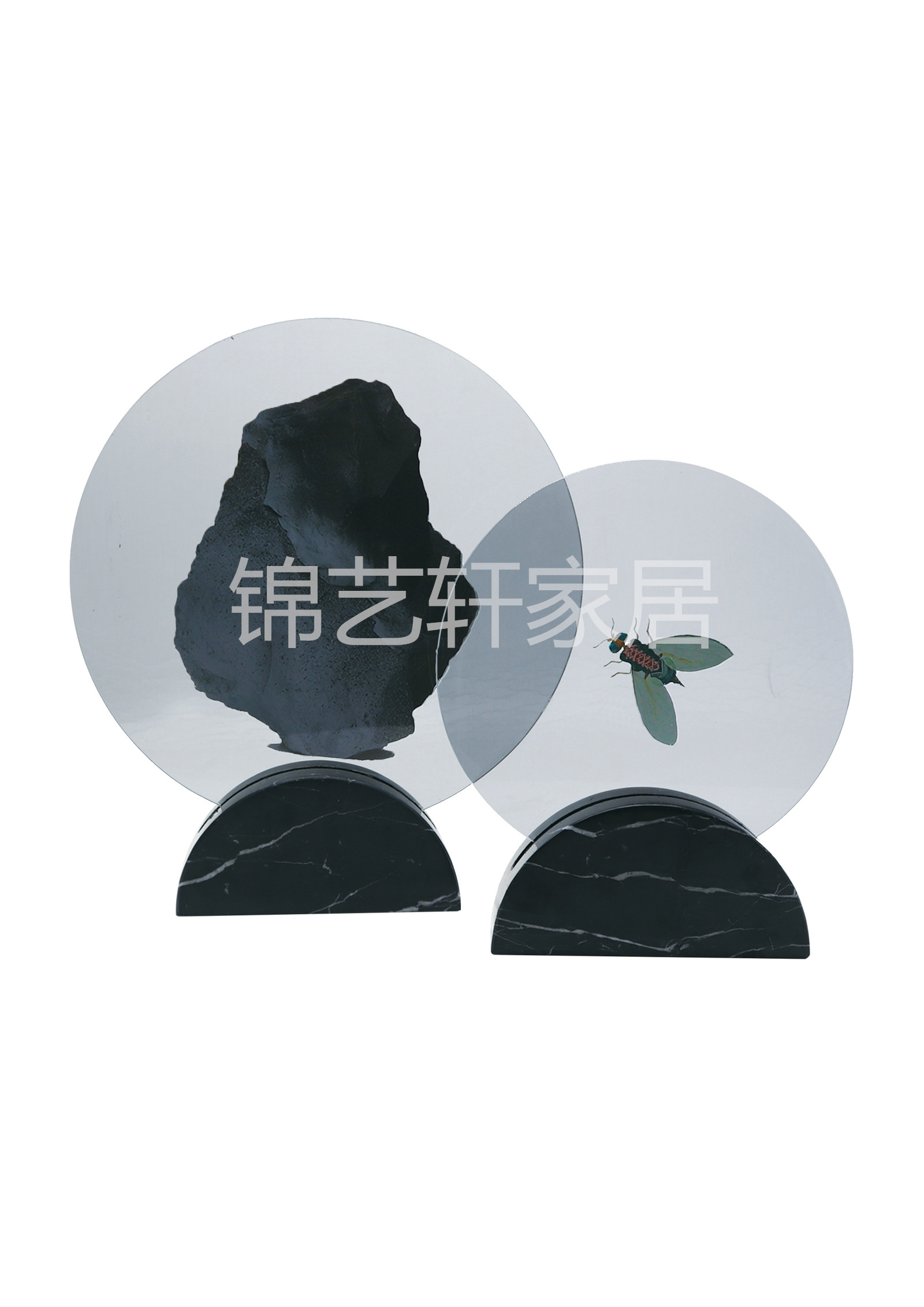 新中式创意摆件样板房会所酒店软装配饰钢化玻璃家居饰品工艺品