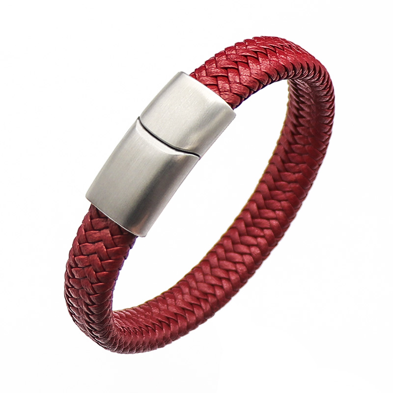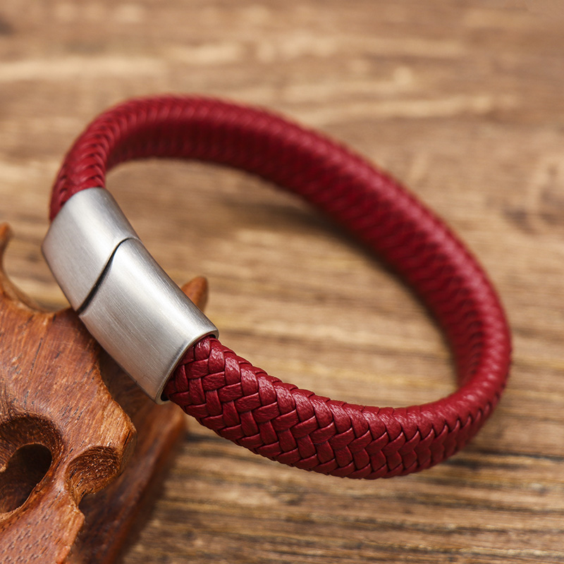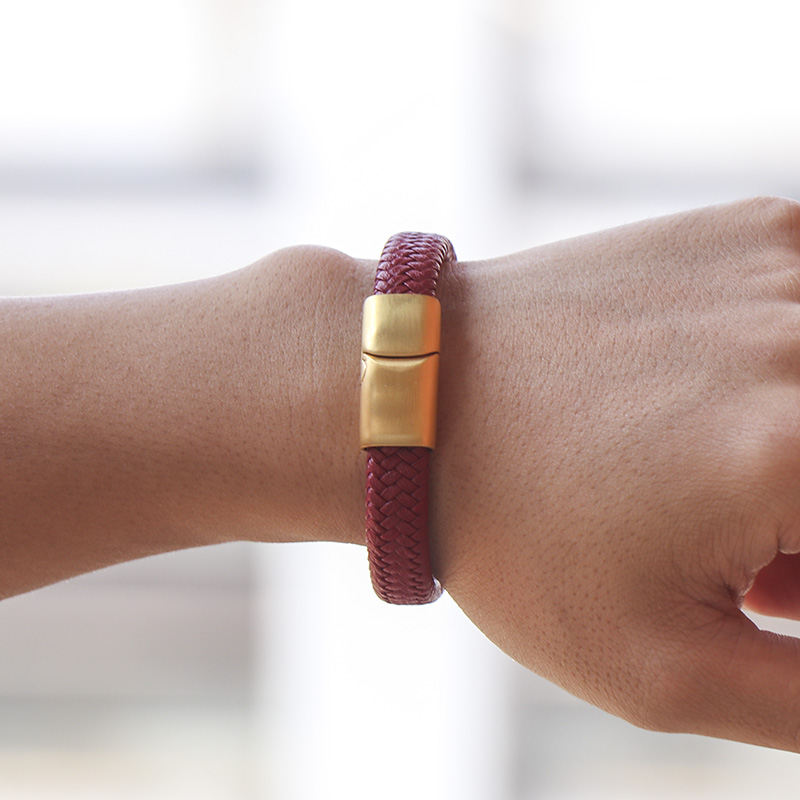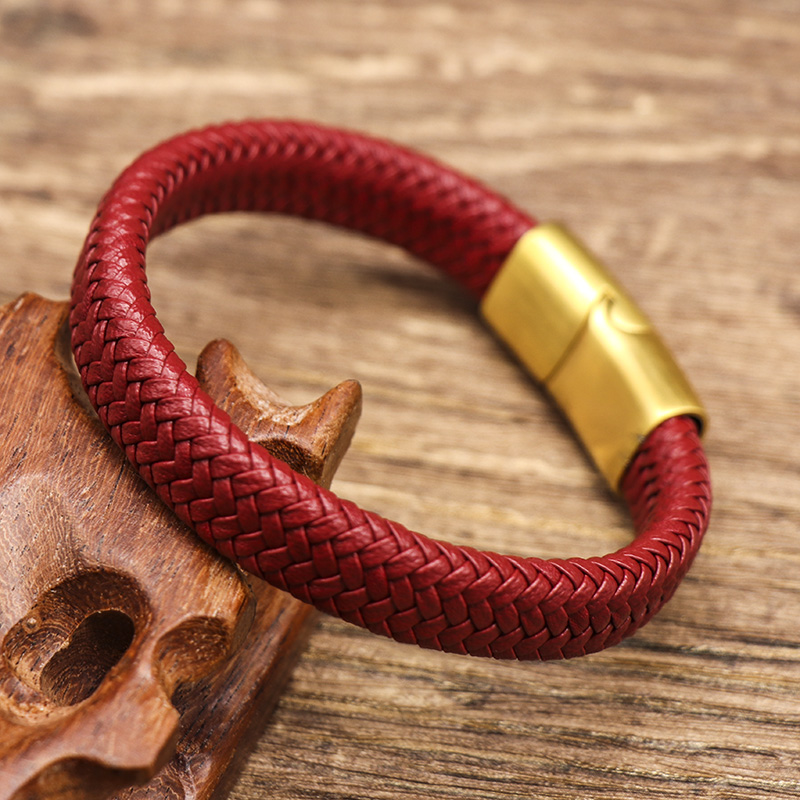 时尚红色皮绳编织手链个性潮人简约金色钛钢手环男女可本命年手环