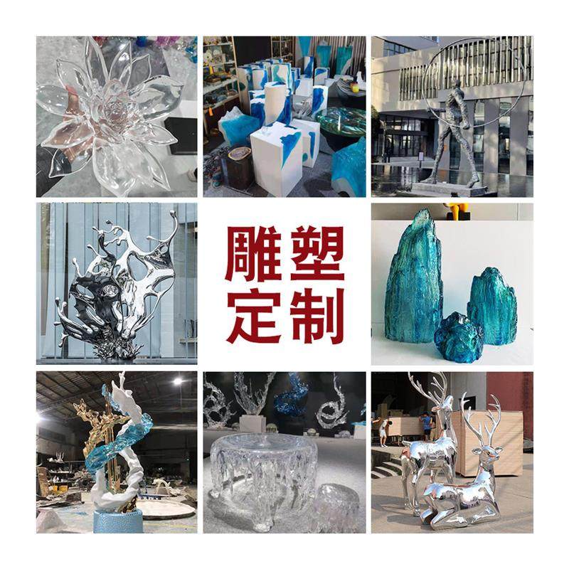 透明环氧树脂工艺饰品摆件大型不锈钢鹿景观玻璃钢雕塑厂家定制做