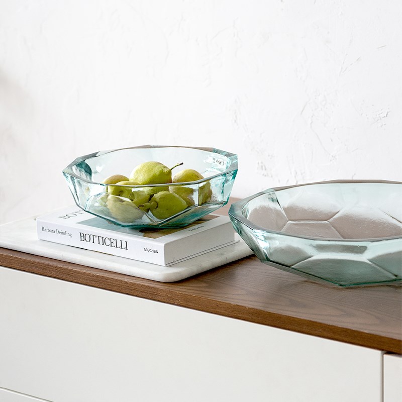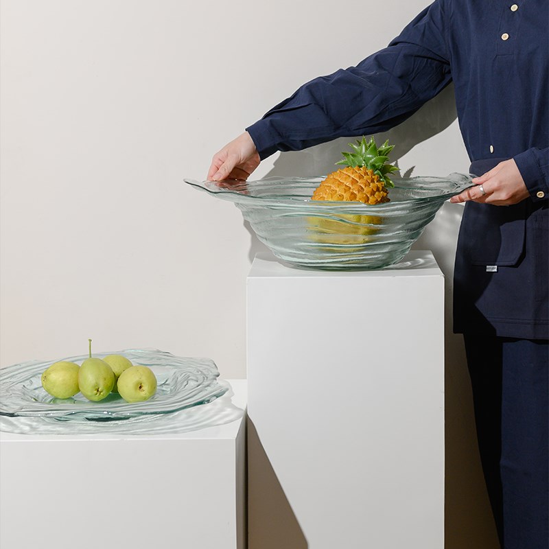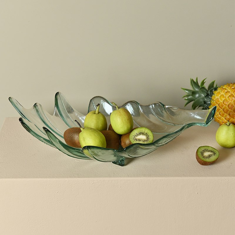 现代简约轻奢水波纹创意玻璃果盘摆件样板间酒店客厅餐桌茶几装饰