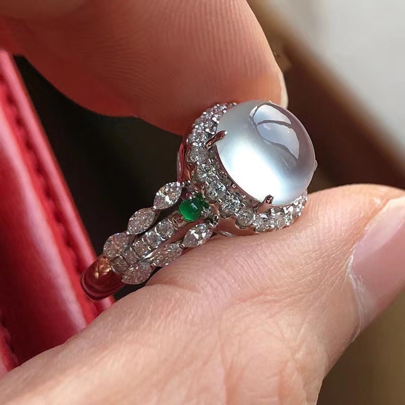 天然玉髓冰种满钻戒指镶嵌S925银优雅大气精致高贵开口指环女款