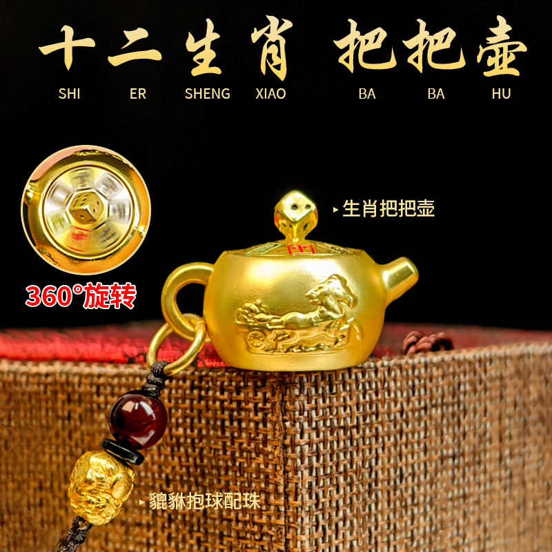 十二生肖把把壶钥匙扣挂件招财进宝本命年转转手把件汽车钥匙挂饰