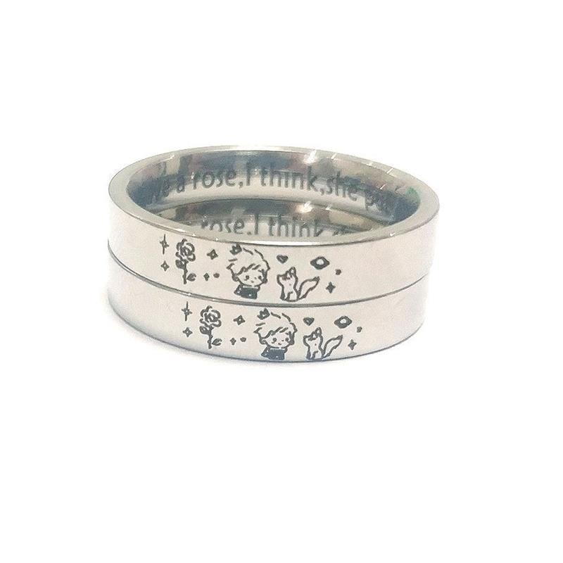 小王子与玫瑰钛钢戒指情侣对戒定制免费刻字来图鸦订制送朋友礼物