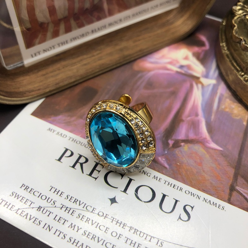 vintage 中古风戒指经典轻奢蓝宝石钻新中式椭圆简约百搭气质指环