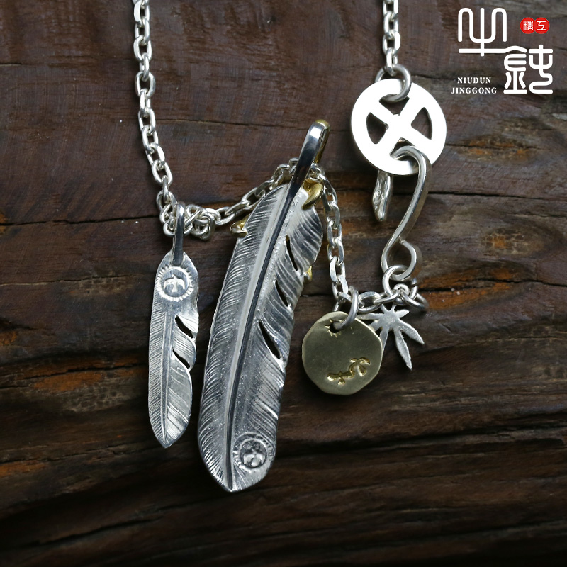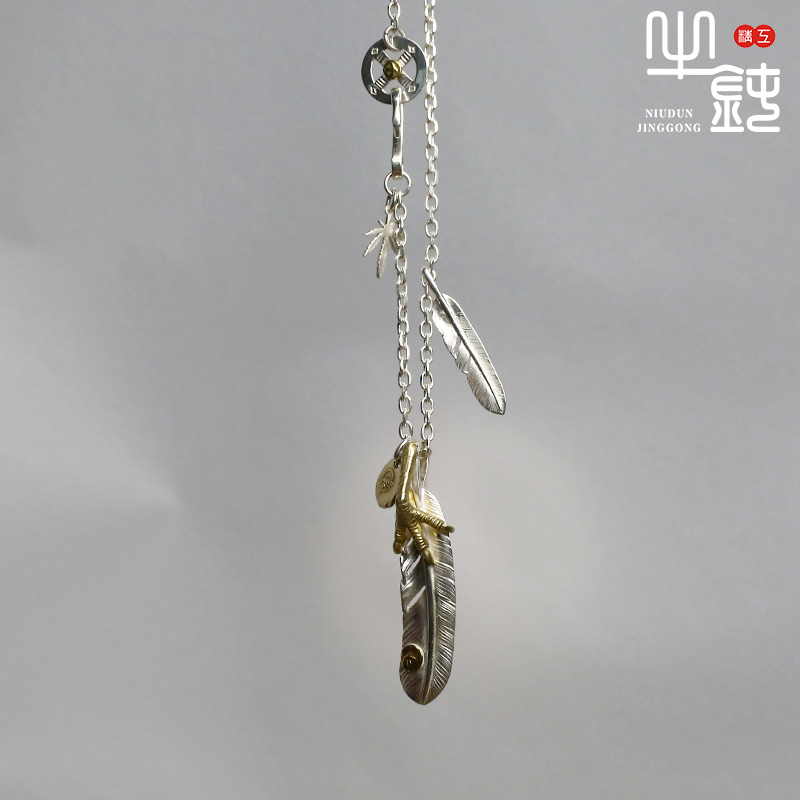 牛钝精工 高桥吾上鹰爪小羽毛项链套装 复刻手工925纯银潮流百搭