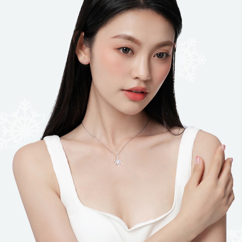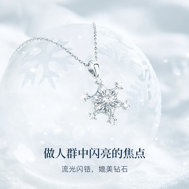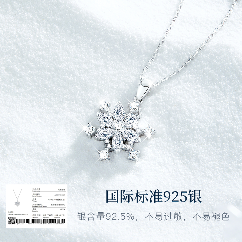 中国黄金央创纯银雪花项链女款轻奢小众秋冬元旦礼物送女友S925