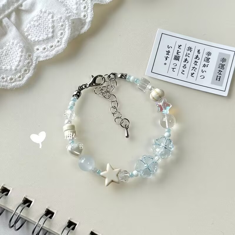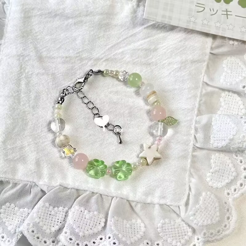 潮流多巴胺四叶草串珠幸运情侣手链女生小众精致手串闺蜜小饰品