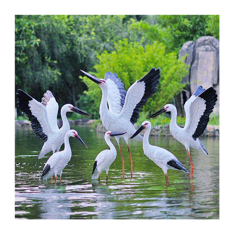 户外仿真白鹤雕塑白鹳摆件玻璃钢水池塘装饰景观仙鹤花园白鹭模型