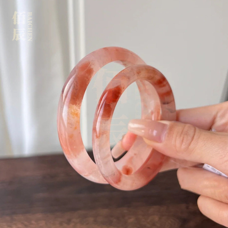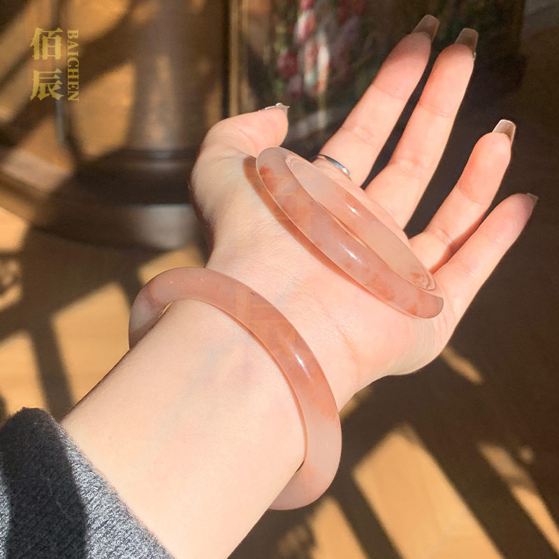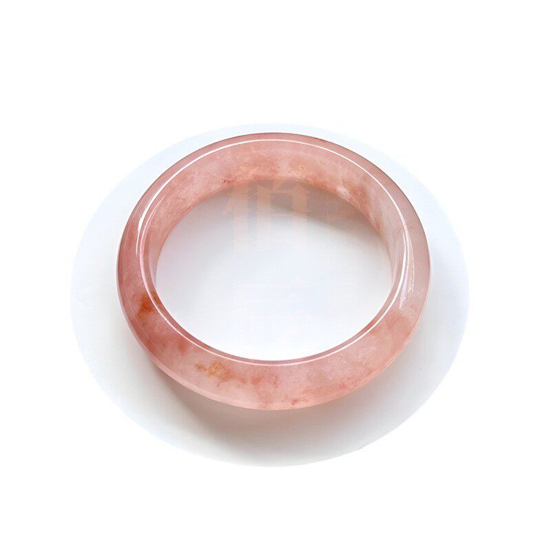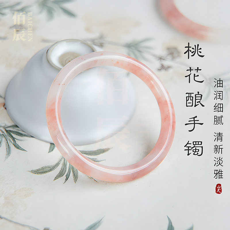 天然金丝玉手镯新中式桃花酿手镯冰透轻奢国风美人镯粉色圆条手镯